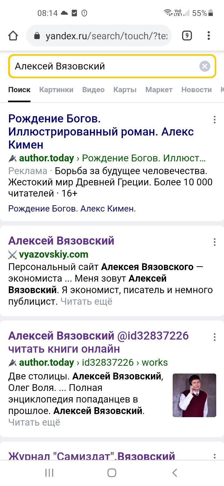 Автор: Алексей ВязовскийЭто теперь такая мода давать рекламу своих попаданцев по моей фамилии в Яндексе? Кимен - новый Царенко?
