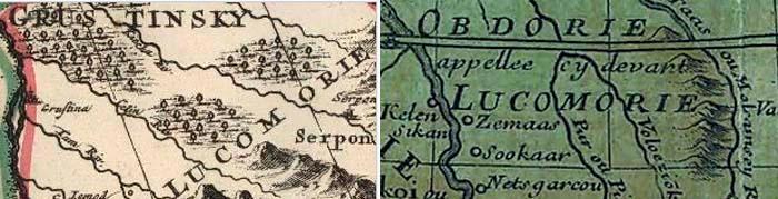 Фрагменты карт Московии и Татарии, составленные в 1685 и 1706 году