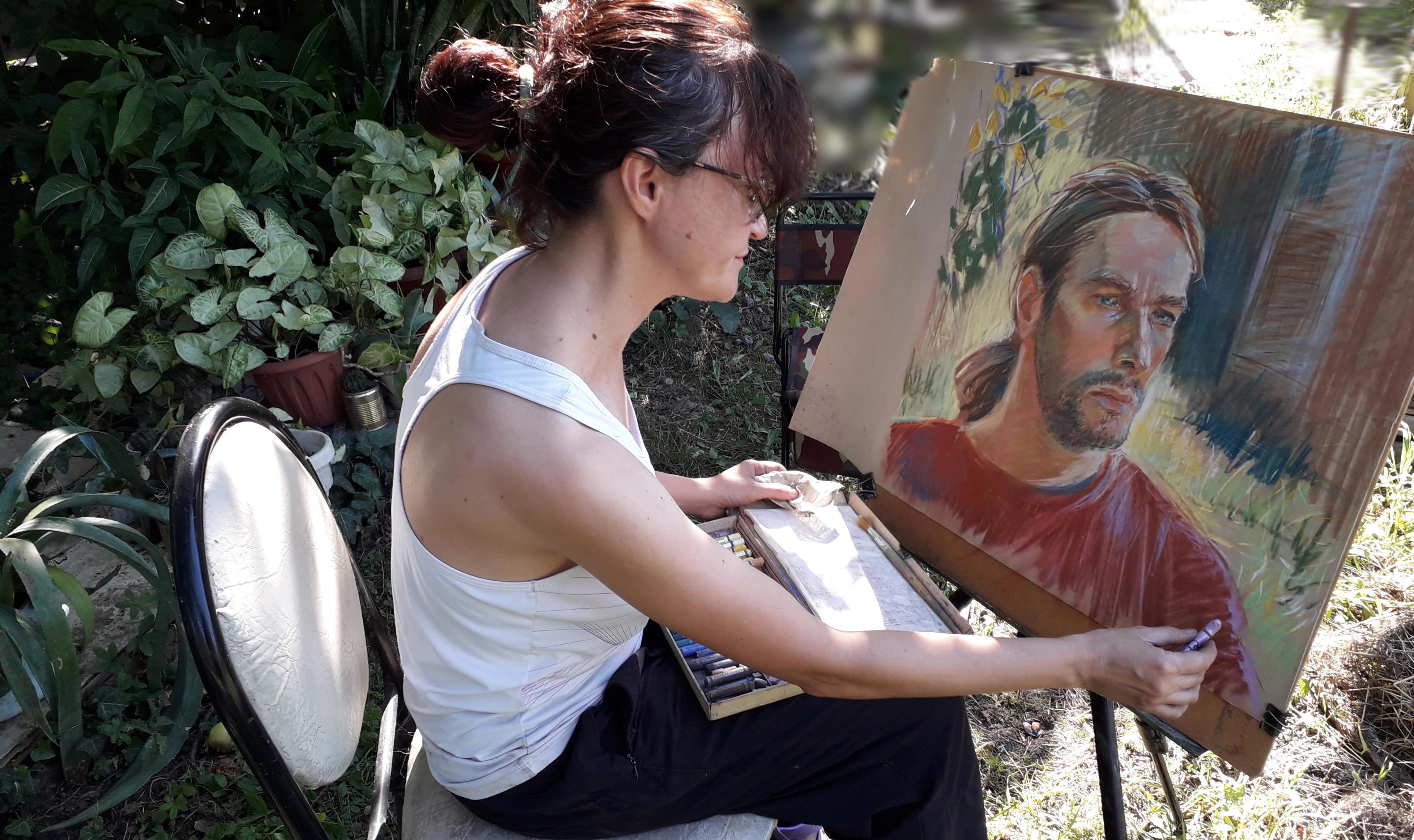 Автор: Любава БлагодарнаяА вот как происходило моё обучение рисованию в технике пастель сухая. Нашла коробку пастели, ещё с советских времён валяющуюся у меня в шкафу. И решила уже ею что-нибудь дельное изобразить. Ещё нашла бумагу подходящую бархатистую (тоже в залежах). Перевезла всё в другой город. И вот я среди комнатных растений, на садовом участке, жарким июльским днём пишу пастелью как в первый раз, потому что действительно первые разы этой пастели были в несознательном школьном возрасте и ничего путного я тогда не смогла сделать.