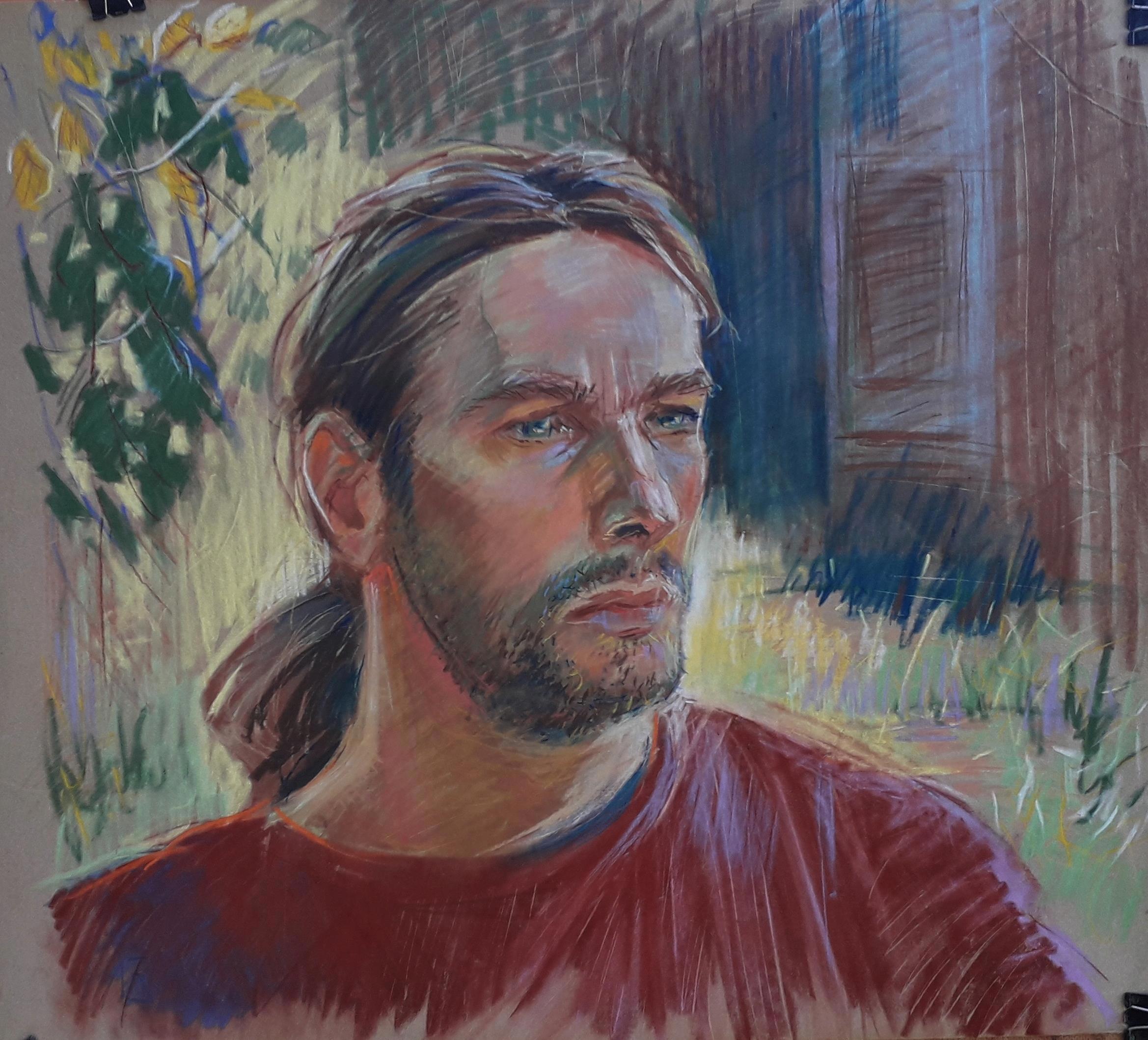 Супруг позировал охотно, за что ему спасибо. Пастель - материал непростой, легко ломается при неосторожном нажиме. Но хорошо ложится на шершавую поверхность. Ну что же, результатом я довольна, можно бы и ещё что-нибудь нарисовать.
