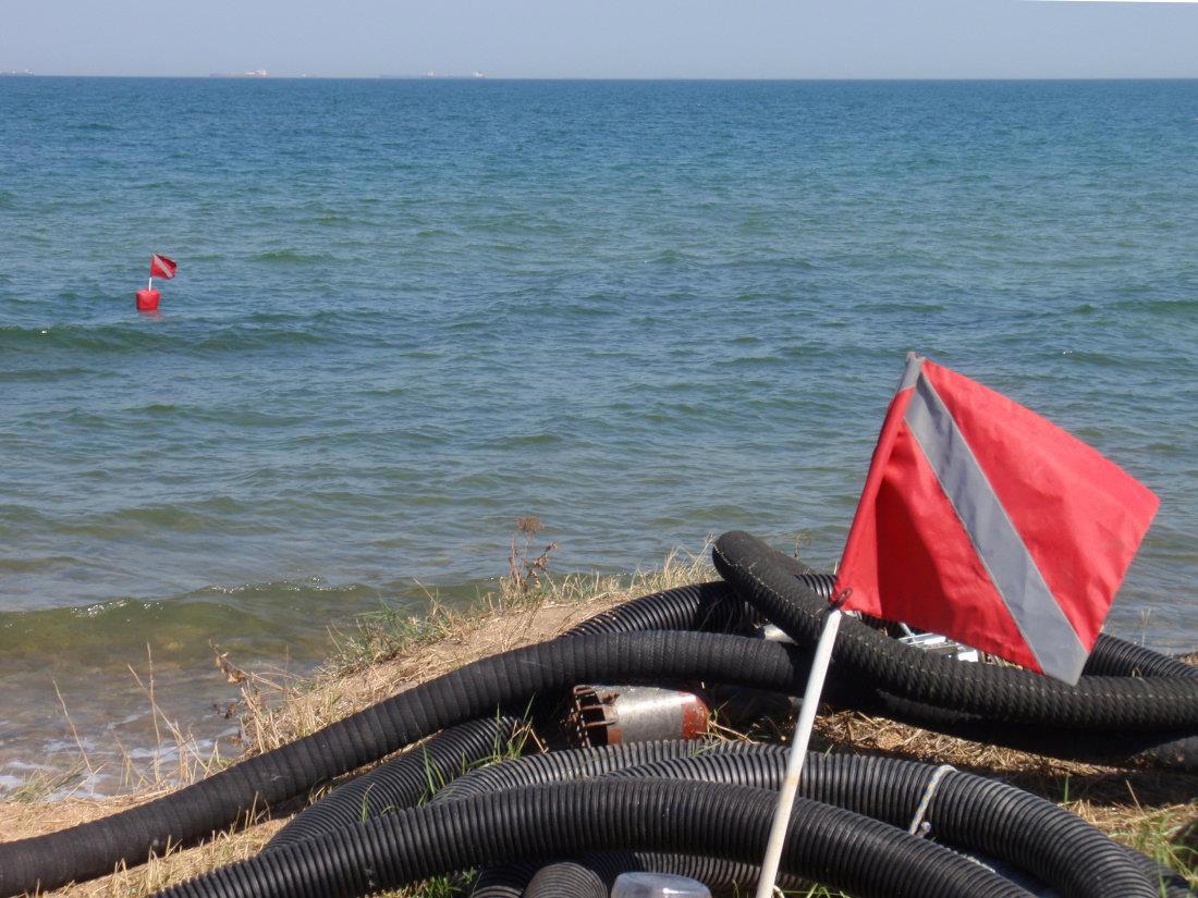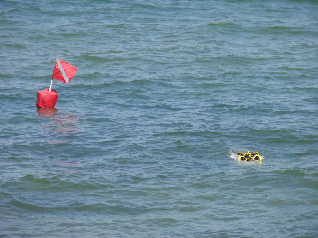 Запуск робота к месту подводных раскопок (оно отмечено буйком с флагом).