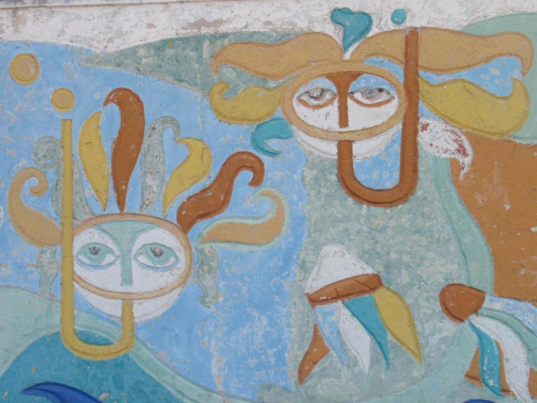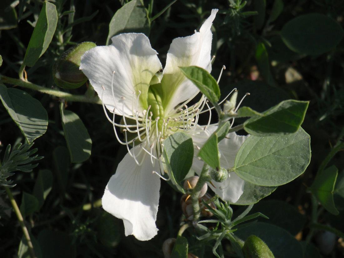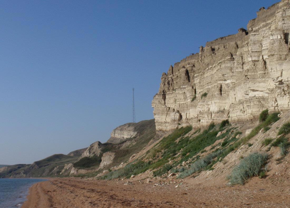 Если идти от лагеря в сторону маяка, голову кружит от красоты склонов, прямо-таки увитых каперсами (да-да, теми, которые солят-маринуют). В толще породы много гипса, если постараться, то можно найти красивые гипсовые розы размерами от сантиметра до полуметра. Много просто пластов гипса, которые тянутся на несколько метров.