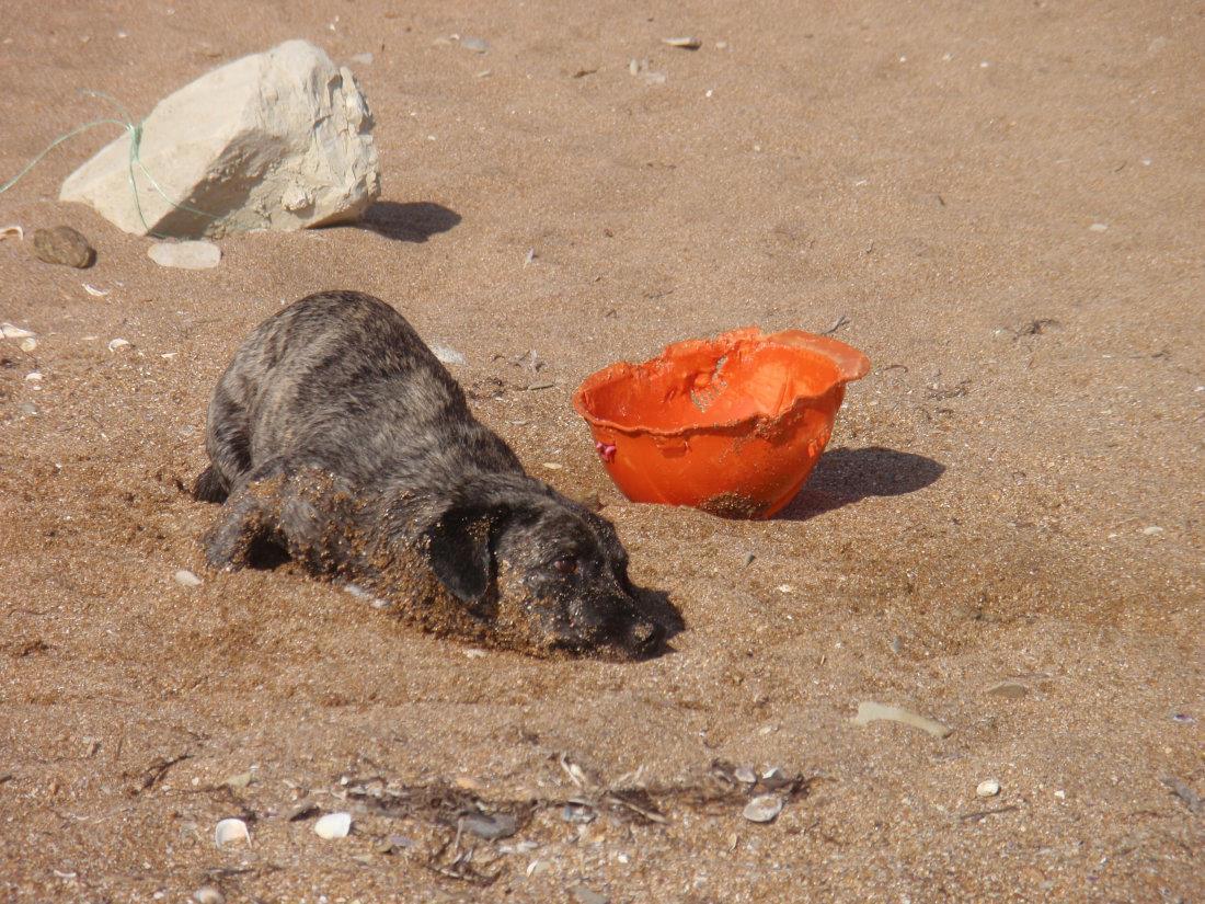 И в завершение – суровая крымская собака, ныряющая за каской и таскающая её по пляжу. Если вдруг хозяин собаки увидит эти фото – пусть не сердится, очень уж питомец шкоднячий.