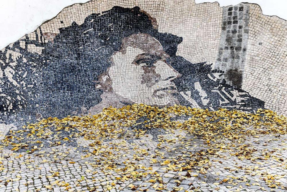 Портрет фадишты Амалии Родригеш, выложенный из плитки кальсада (фадишта это исполнитель или исполнительница фаду, традиционного португальского музыкального жанра)