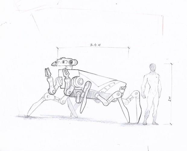 Автор: Алексей СидоревичНа наброске-эскизе изображён стандартный пряд. Это робот, кибер может управлять малыми прядами и сверхмалыми. Также способен эвакуировать пострадавших махсов, для чего внутри корпуса имеется герметичная полость с системами жизнеобеспечения. Эта модификация прядов способна работать на поверхности кислородной планеты, однако есть и космические, с небольшими двигателями.