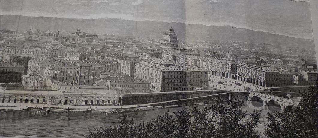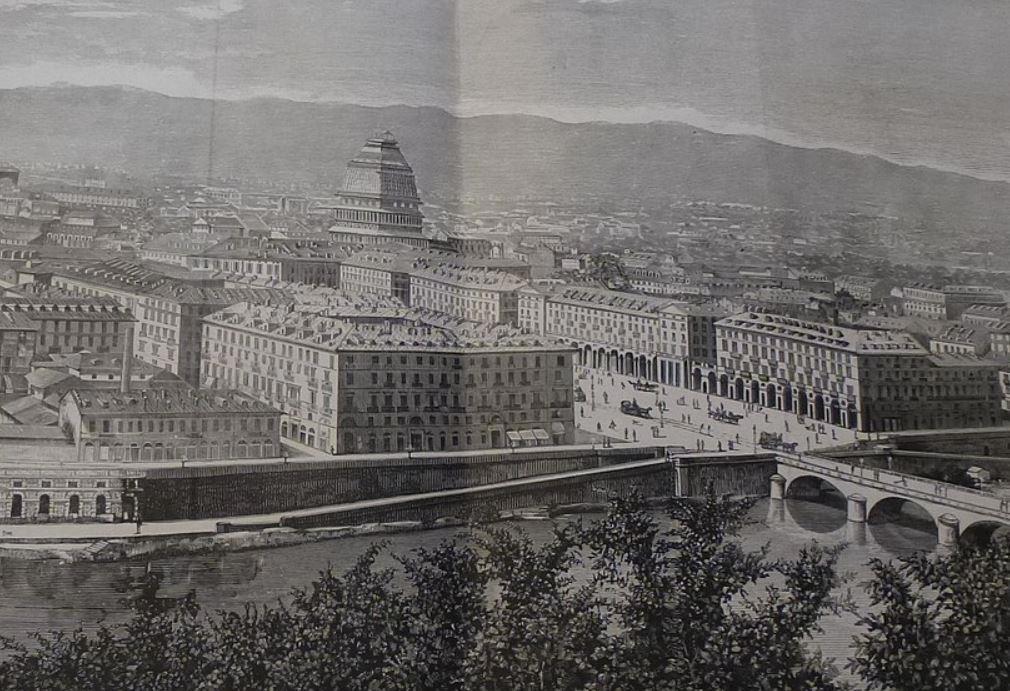 Турин в 1884 году. Высота постройки Антонелли достигла 90 метров.