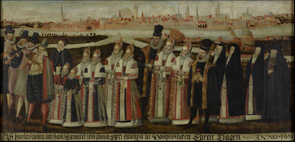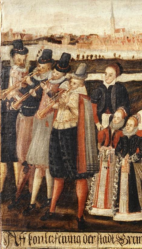Городские музыканты. Деталь картины неизвестного автора "Hochzeitszug". 1618 год Хранится в Focke-Museum Бремена.