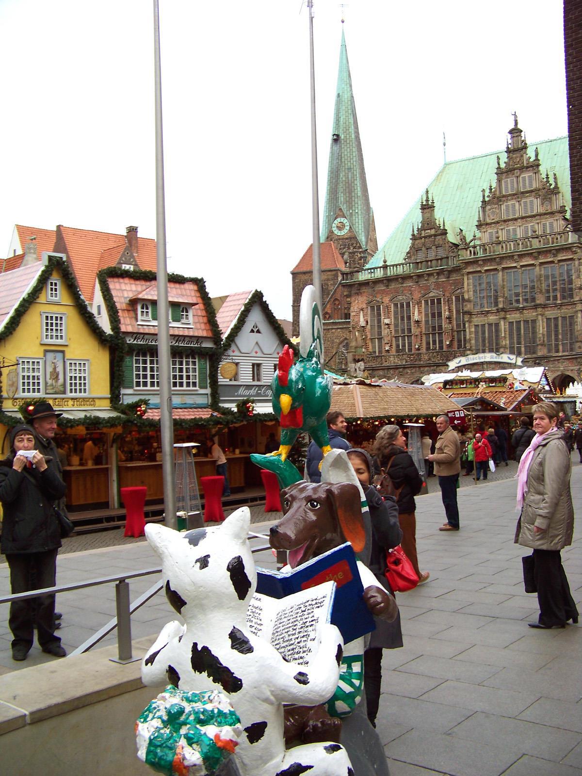 На улицах Бремена есть и другие изваяния знаменитой четвёрки животных: