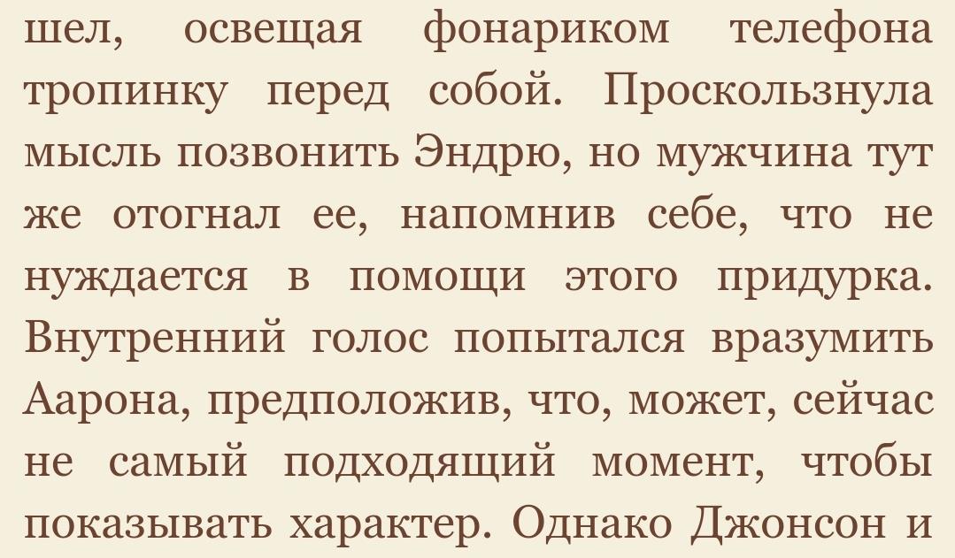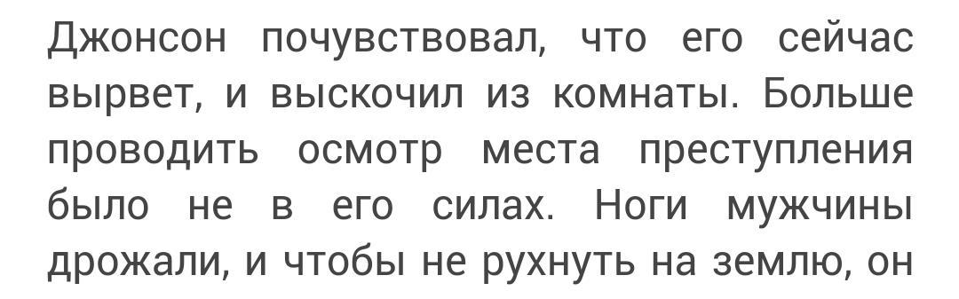 Мне на протяжении целой страницы начали твердить, что тут есть ещё и судмедэксперт. Правда, буквально через несколько секунд чтения появляется четвертый, Эндрю, новый напарник, взамен той, что лежала мёртвой в ванной.