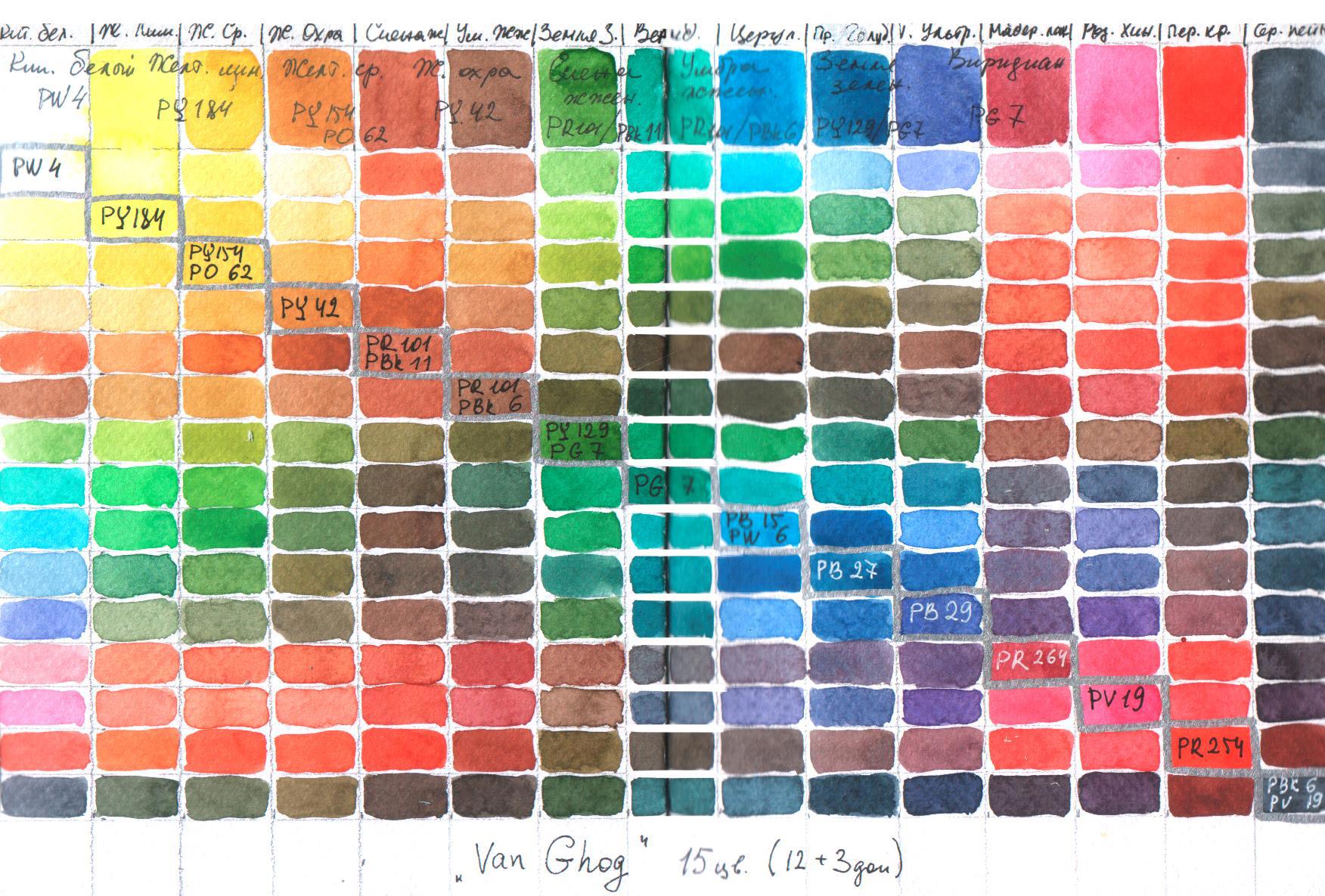 Вот выкраска с парными смесями. Коряво, по горизонтали просчиталась было, поэтому с подписями накосячила. Ну да ладно, там наверху подписала правильно.