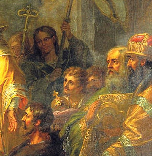 Что касается ростовского князя Бахтеярова, то он в 1608 году был пожалован царем Василием Шуйским в бояре, в том же году попал в плен к Тушинскому вору, бежал, первым привез в Москву известие о гибели второго Самозванца. Воеводствовал во Владимире, воевал во Втором ополчении… Дожил до конца Смуты, ездил с делегацией от Земского собора звать на трон юного Михаила Романова. Вот он - в центре, с державой в руках, - на фрагменте картины Г. Угрюмова «Призвание М.Ф. Романова на царство 14 марта 1613 года».