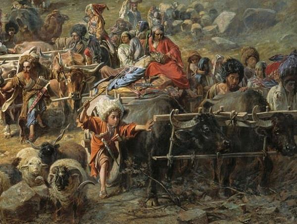 Грузинский П. Н. Оставление горцами аула при приближении русских войск. Фрагмент