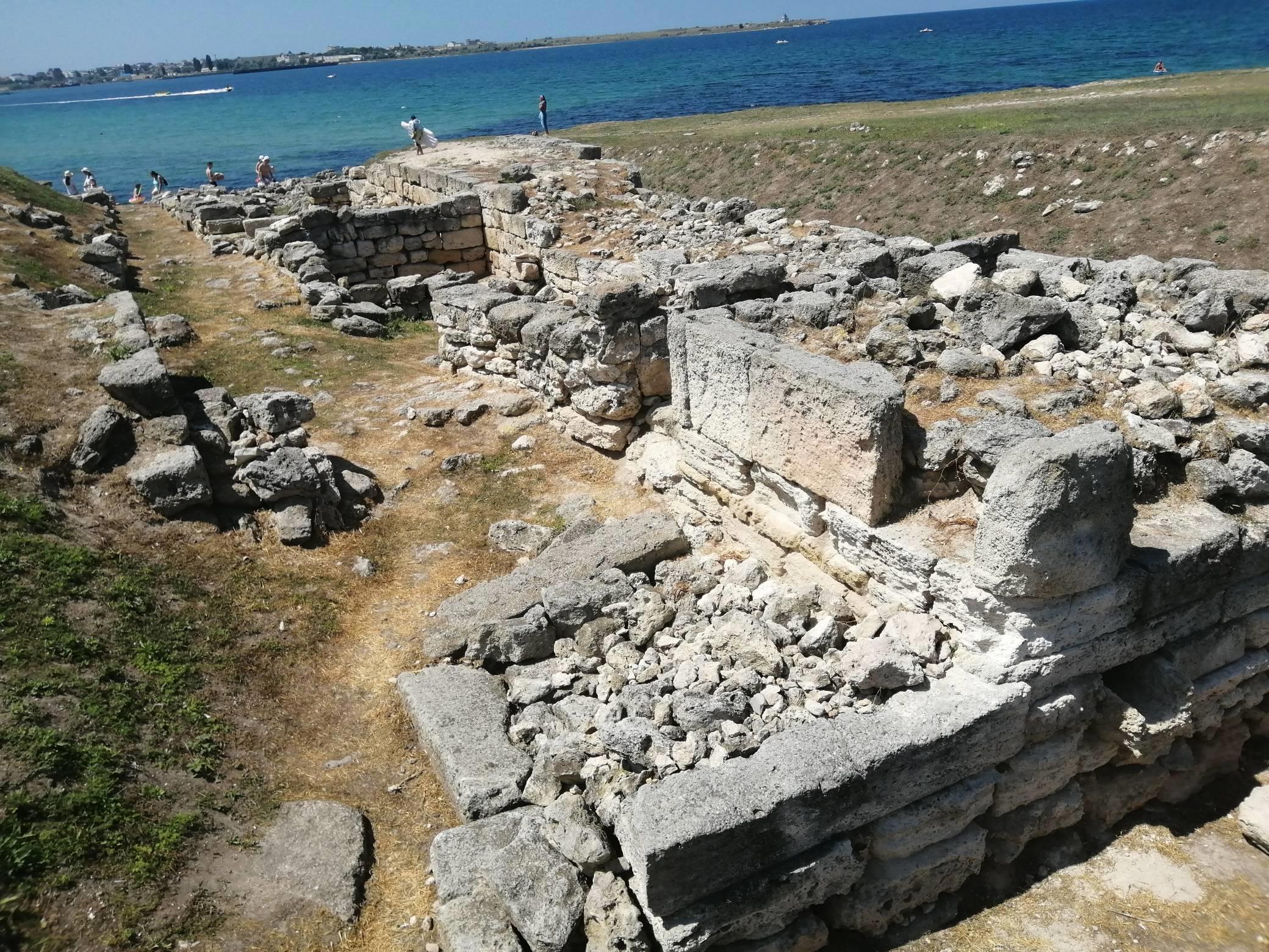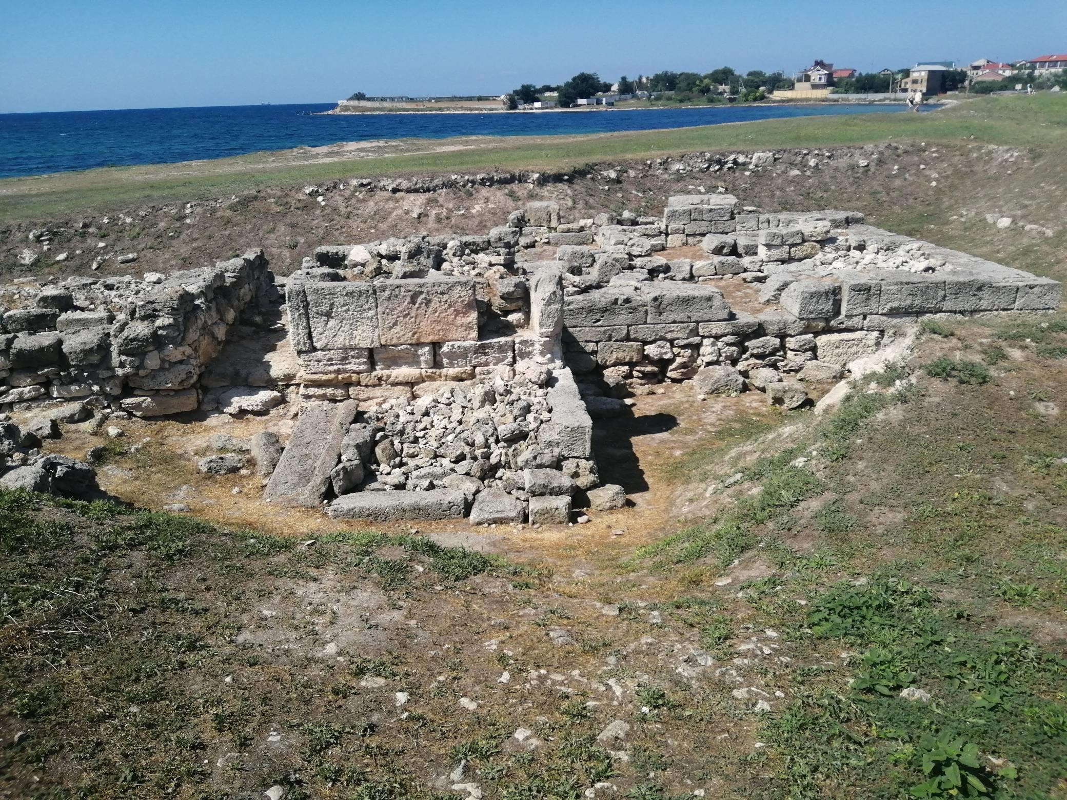 Это древнее античное городище, на территории которого раньше распологалась крепость, существующая где-то с 4 в до н.э по 3 в н.э. Владели ей и греки, и скифы, и, видимо, использовали для охраны этой гавани. Сейчас на этом месте (разве что, месте куда большем, городище по сравнению с поселком малую площадь занимает) находится поселок Черноморское, это в крыму. Послезавтра я отсюда уезжаю, так что решил напоследок погулять по городищу. Пятый час тут торчу