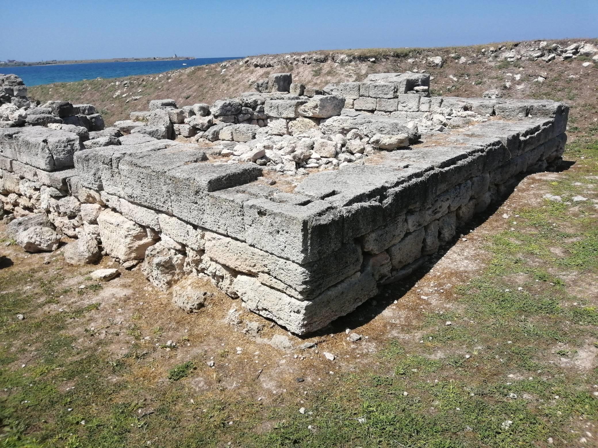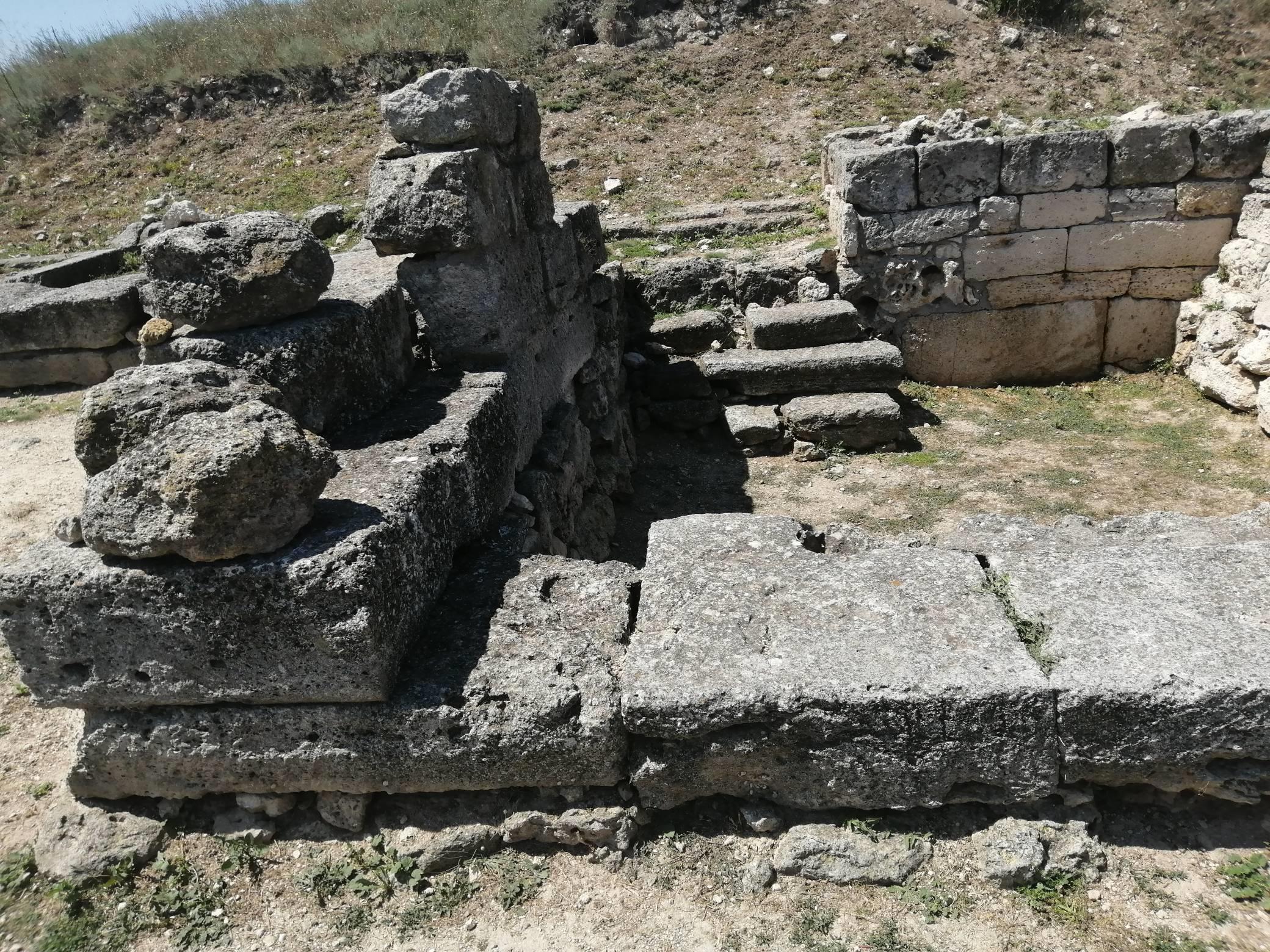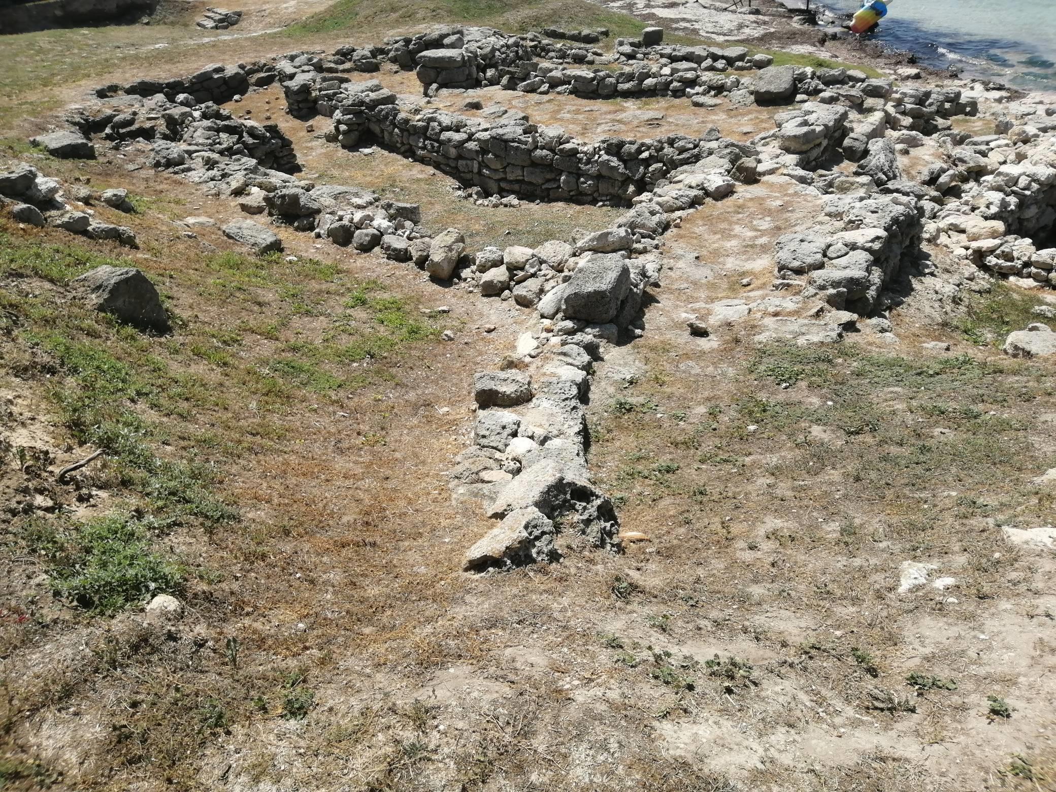 Это очень красивое место. И красивое не столько морем и растительностью, сколько камнями. Да, очень заворажевущие камни, именно те, которые из фундамента городища. Как минимум потому, что выточены они людьми.