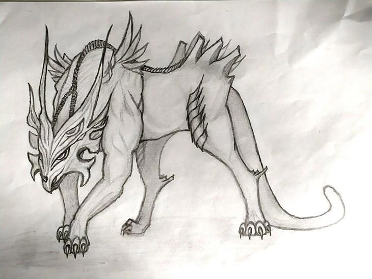 *Внешний вид: Унаследовал некоторые детали от Баргеста и Богун(а) Упас(а). Похож на помесь дракона (голова) и пумы (основное тело). Твёрдые голова и тело чёрного переливающегося цвета с ядовито-зелеными прожилками, без шерсти. Глаза золотого оттенка.