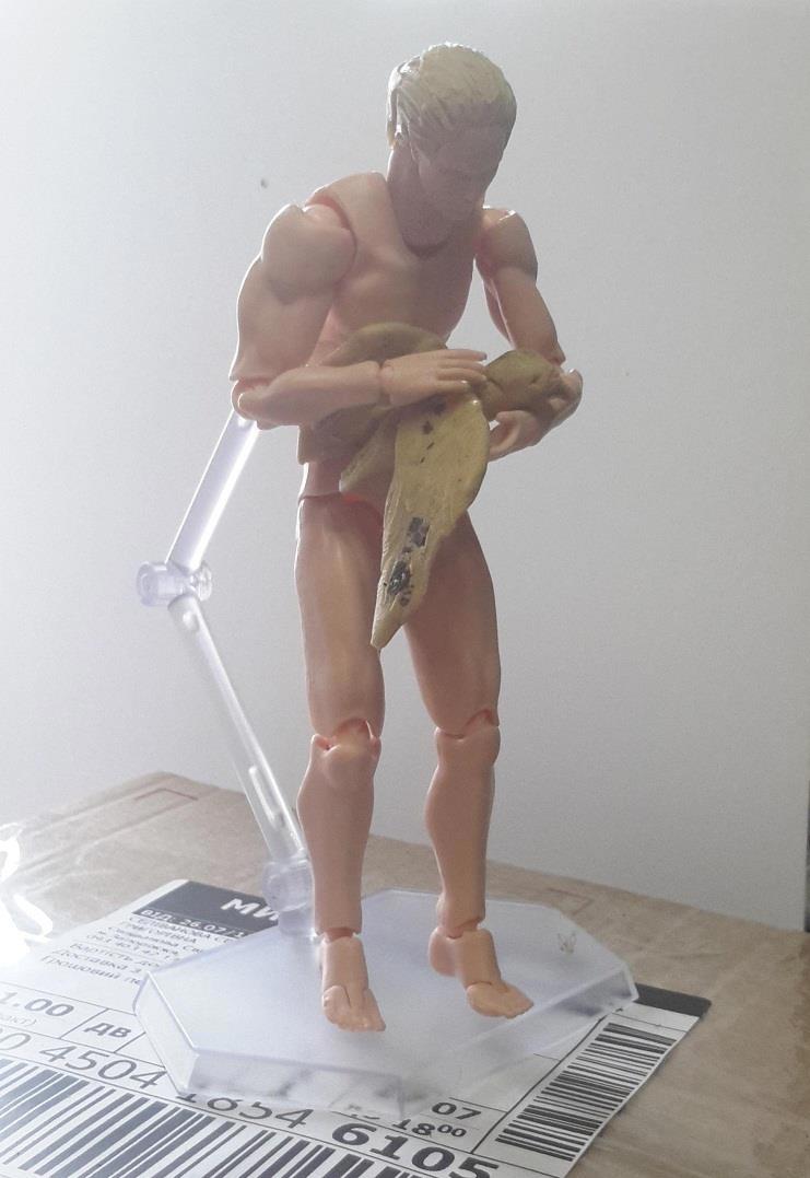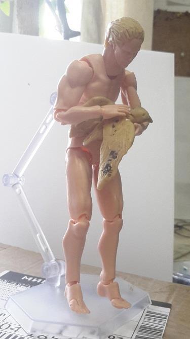 В роли морлескинского мага Ольгера снимается безымянный манекен китайского производства, которому я налепила пластелином волосы и дала в руки пластелиновую ворону.