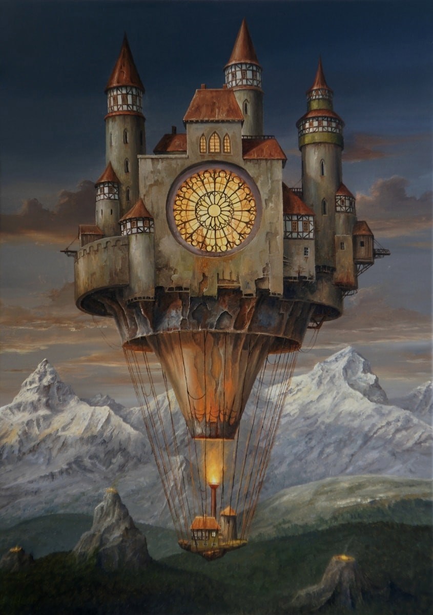 Как по мне, выглядят арты Ясниковского просто потрясающе, а некоторые из них ещё и впечатляют своей игрой с законами физики. Особую любовь автор питает к такому направлению фантастики как стимпанк или паропанк, чему посвящена львиная доля его работ.