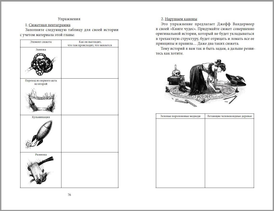 В учебнике нет ничего лишнего, это в прямом смысле концентрат теории по всем основным темам, связанным с работой над книгой. Кроме основных знаний, в нём есть списки частых ошибок, специальные упражнения, а ещё более 50 крутых иллюстраций. Книга не рассчитана на детей, но тем не менее материал изложен максимально просто и доступно.