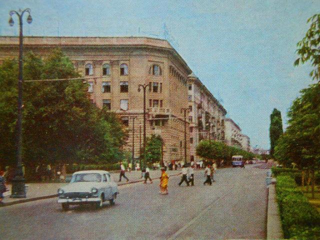 Вчитайтесь повнимательнее и посмейтесь: здание построено в 1957-м, а Театр Кукол в нём находится с 1956-го! По воспоминаниям старожилов вместо Театра Кукол в этой части здания год или два была столовая. То, что оно было построено значительно раньше (на два-три года) "соседа" Универмага с другой стороны - нового "Интуриста", на который ещё нет и намёка, подтверждает и вот это фото: