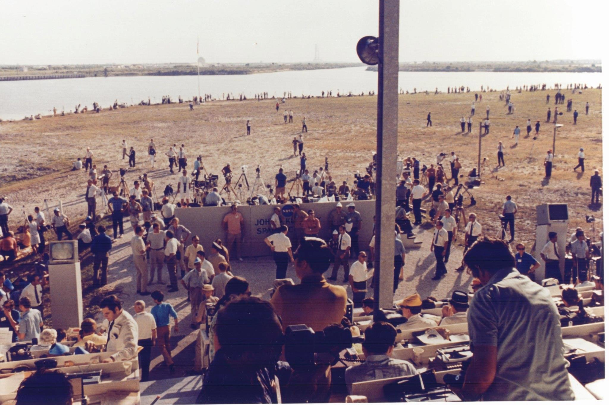Толпы сотрудников прессы ждут примерно в миле от стартового стола