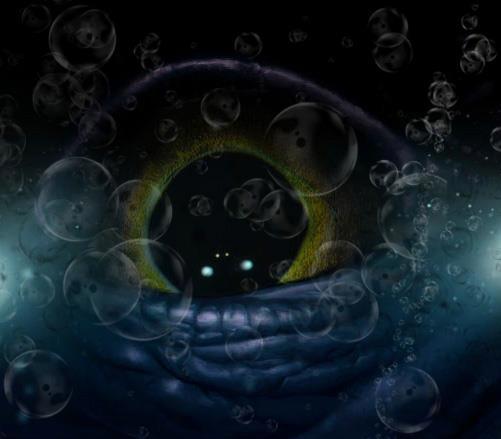 "Из-за мутной воды все равно было практически ничего не разобрать, но, когда я крутнулась вокруг своей оси, кое-что я все-таки разглядела. Не сразу сообразив, что передо мной, я замешкалась в недоумении. Осознание того, что я смотрю в гигантский глаз, размером с мою голову, мгновенно вселило в меня настолько дикий ужас, что я застыла, как статуя."