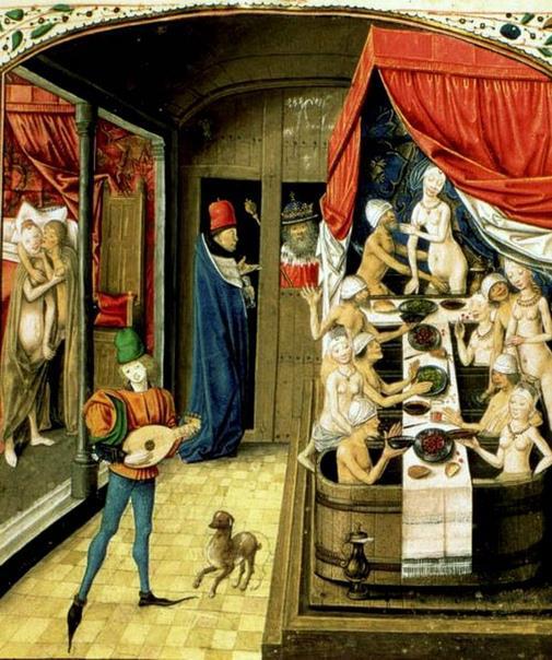 Вот подборка из ВК покойного Льва Прозорова - двадцать девять картинок на тему банных увеселений на средневековом Западе. А вот - обширная популярная статья из паблика Grand Orient о банном деле в Западной Европе на протяжении нескольких веков, с выдержками из цеховых уставов и государственных законов.