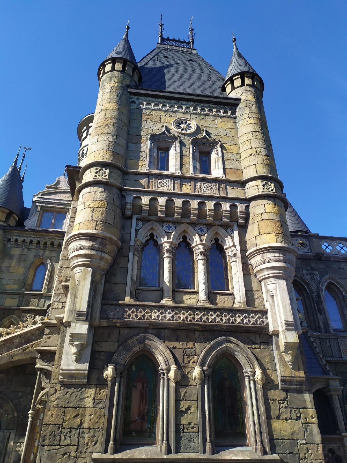 Однако, от сооружений подобного типа замок отличает та любовь, с которой он возведен. Фактически - это воплощение фантазий о рыцарях Круглого стола, грифонах, драконах, и прочих атрибутов Средневековья.