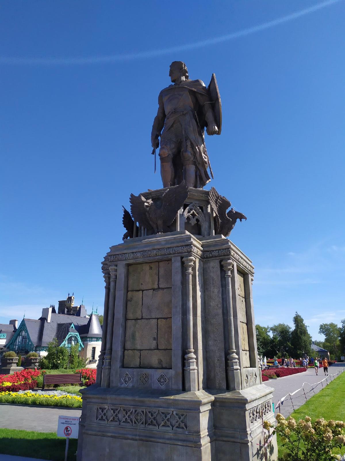 На территории замка расположены скульптуры рыцарей Круглого стола.