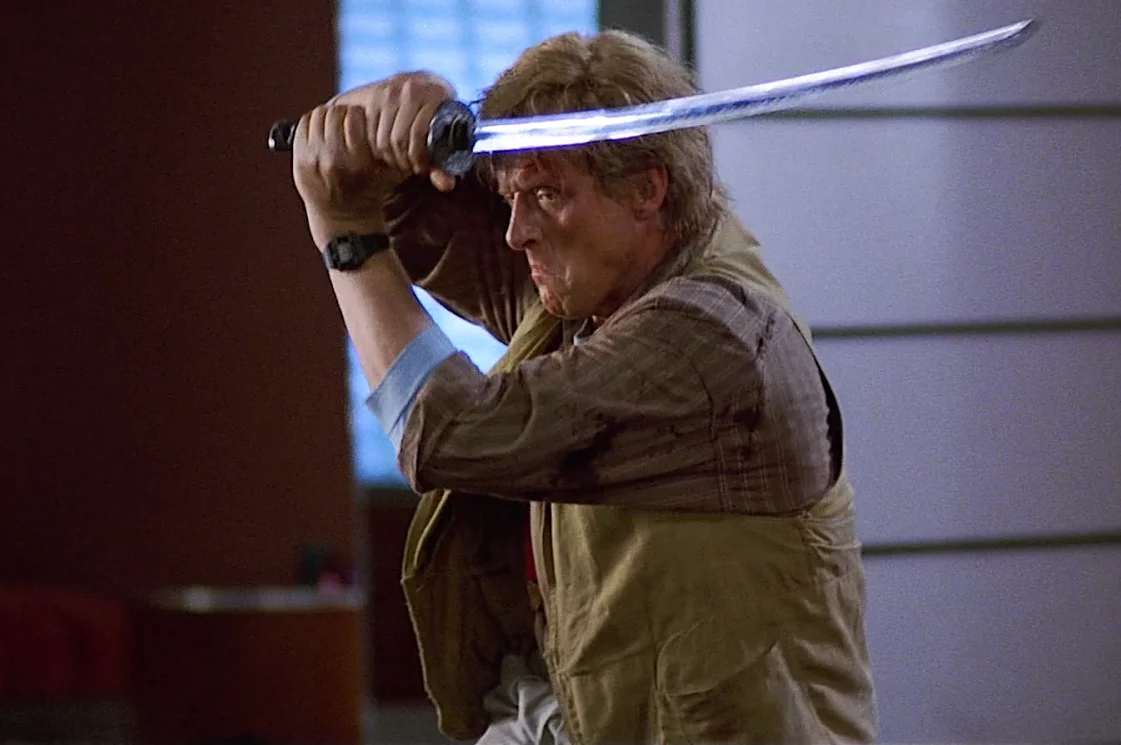 Было мне лет семь или восемь. По ящику (который в тот момент ещё работал) показывали фильм про Рутгера Хауэра с катаной. Там пафосный и спокойный главный герой (слепой отставной военный, потерявший драгоценное зрение в боях за свободу американского народа от вьетнамских захватчиков) бродит по бандитским районам и ищет неприятностей.
