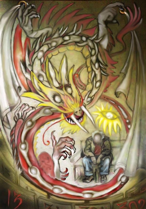 Автор: Акан ТроянскийПо итогам Восьмой карусели дракон-добытчик из рассказа «Кто шуршит в чайнике» обрёл благосклонное внимание сразу четырёх (!) художников))) и второе место в ТОП-10 конкурса)))