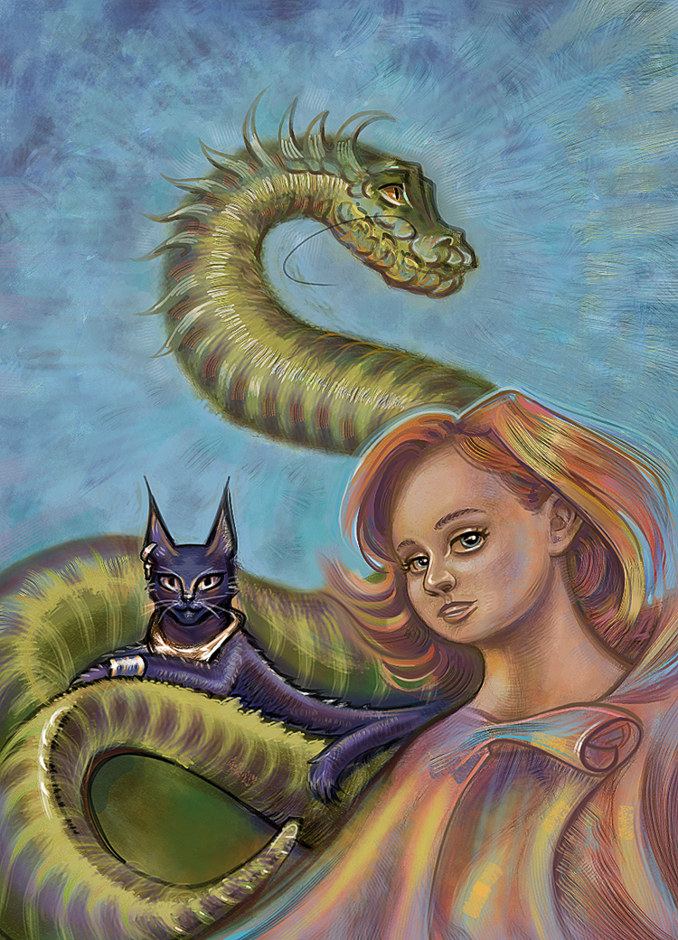 + Впервые в жизни нарисовать кошку, змея и 6-летнюю девочку -- \/ тоже (предыдущие кошачьи арты не считаются)