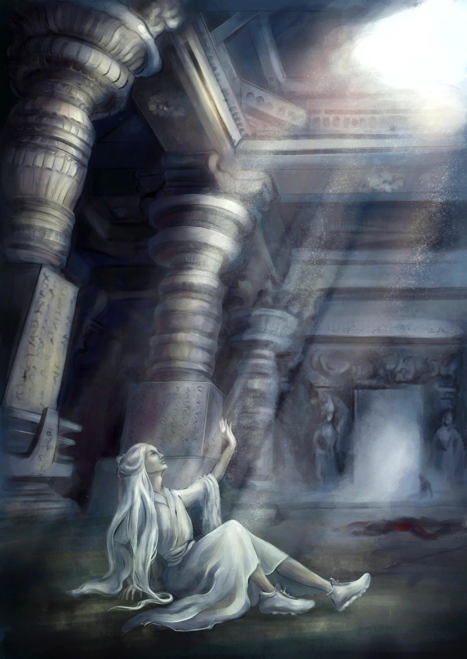На картинке показан драматичный момент, сразу после перемещения героя в разрушенный храм, в корейское средневековье: