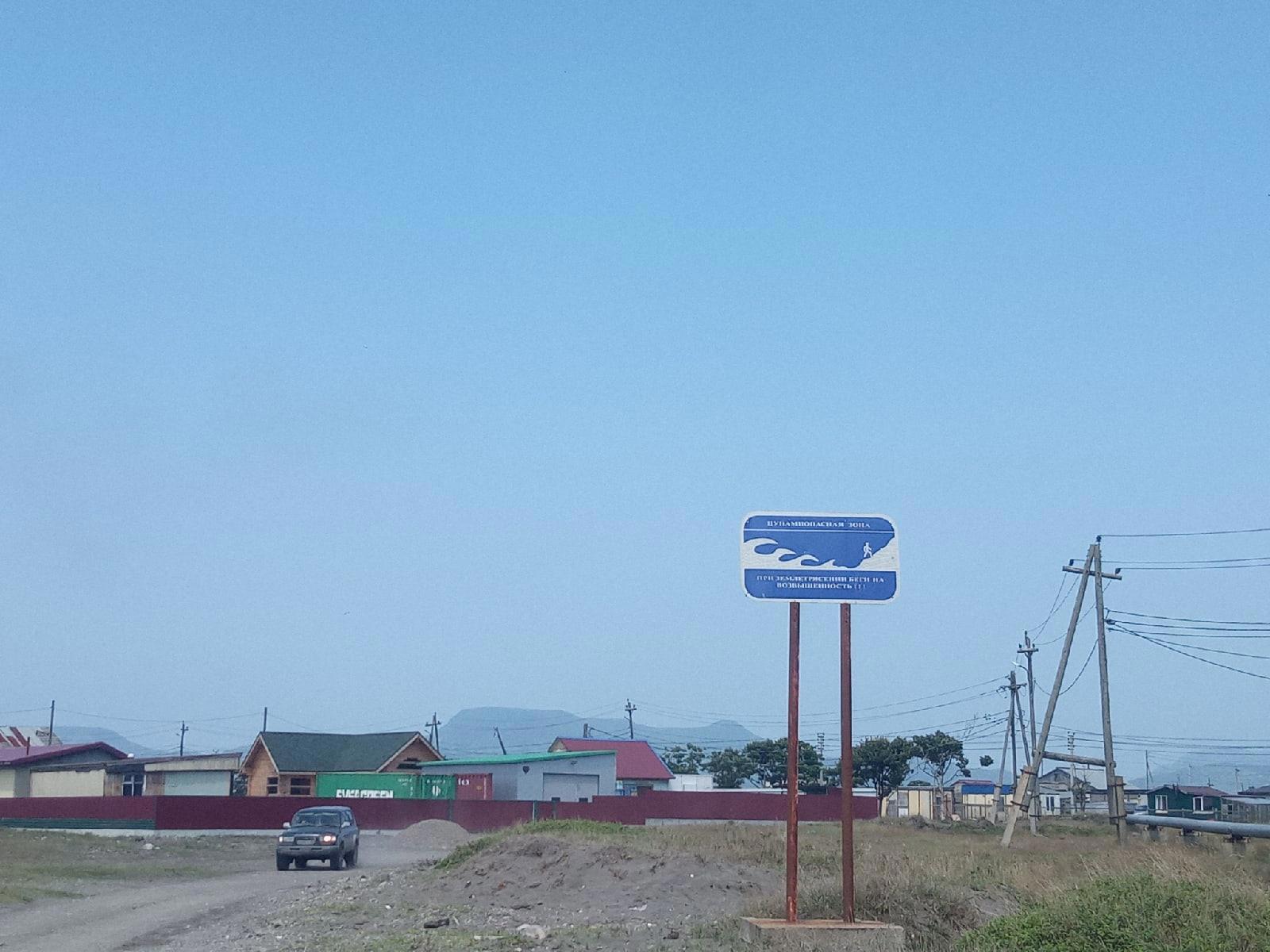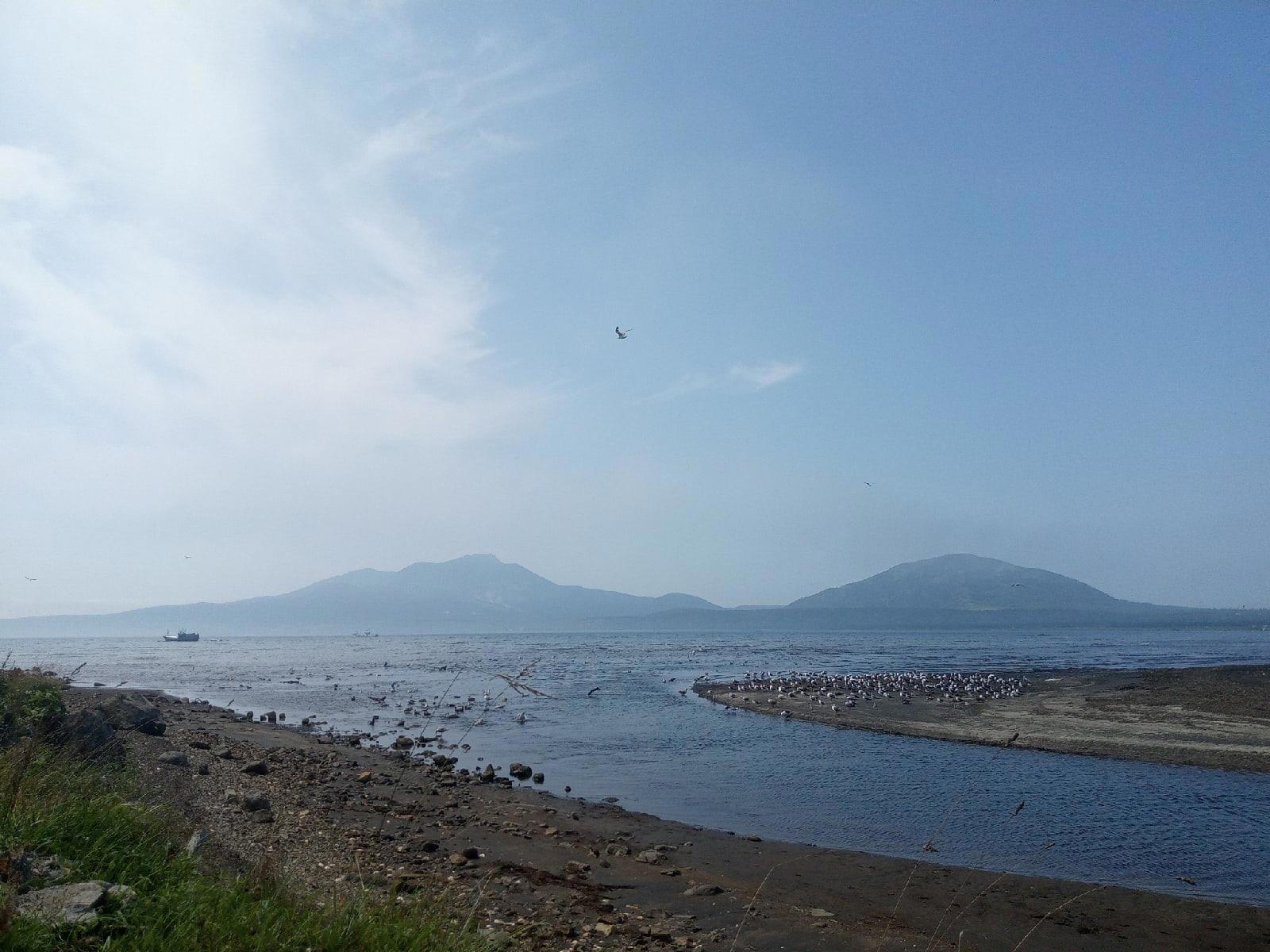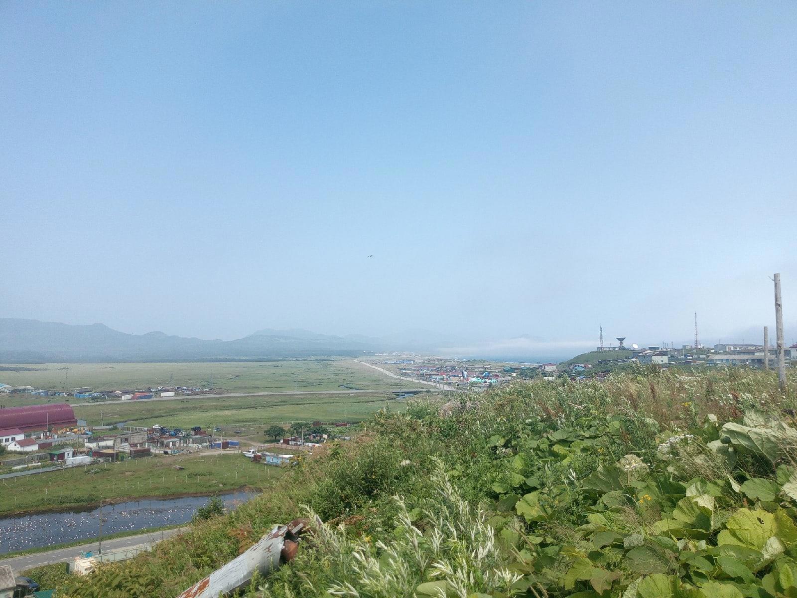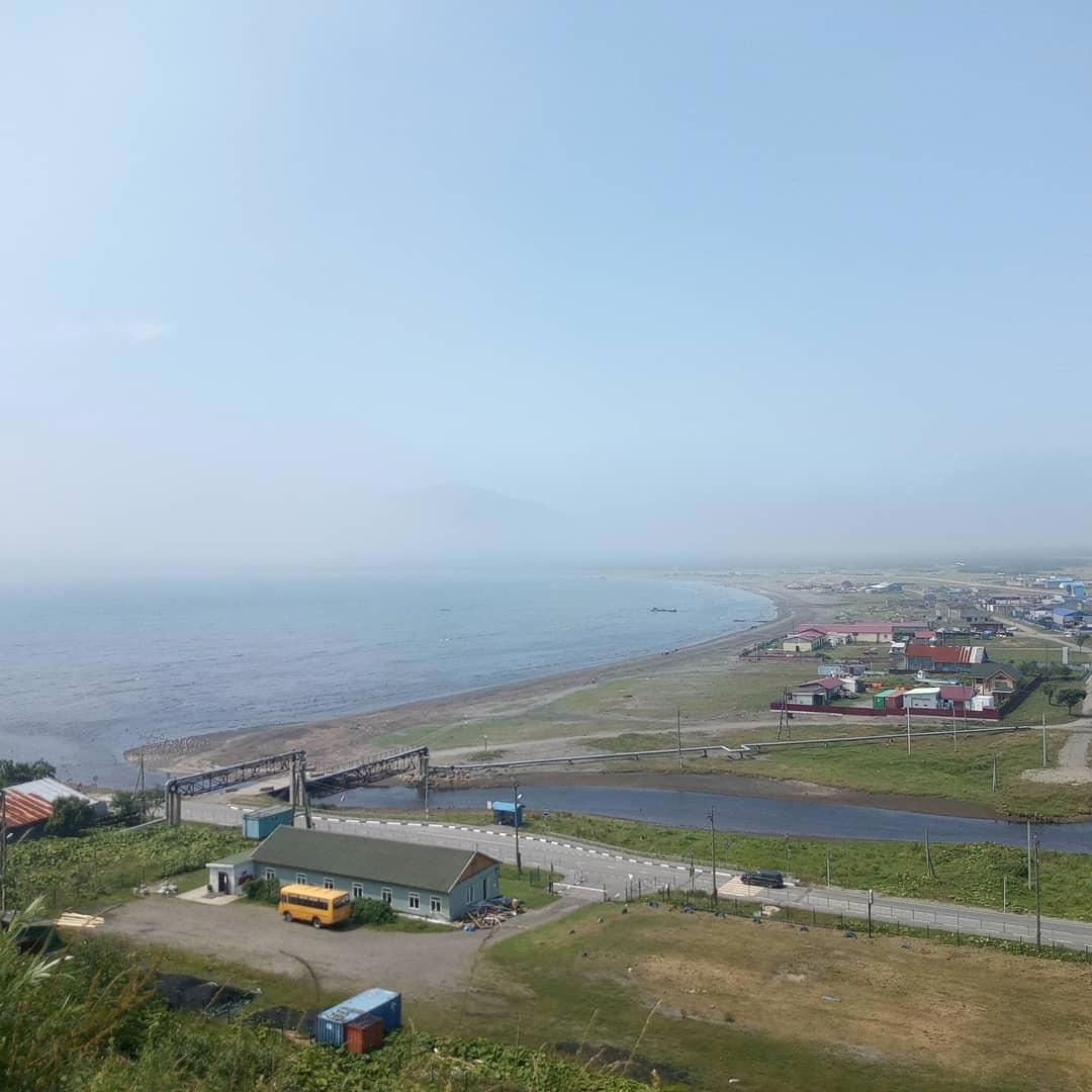 Бухта Южно-Курильская. Когда-то, ПГТ располагался в этой низменности. Но в 1994 пришла большая волна и смыла нахрен, почти все. Теперь там постапокалипсис и редкие вкрапления промзон.