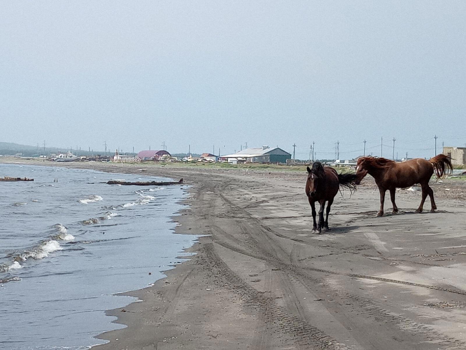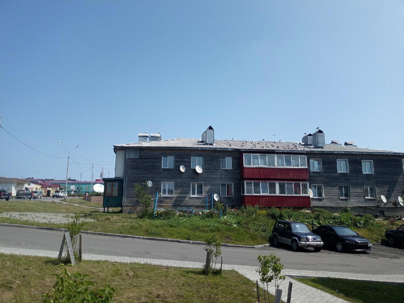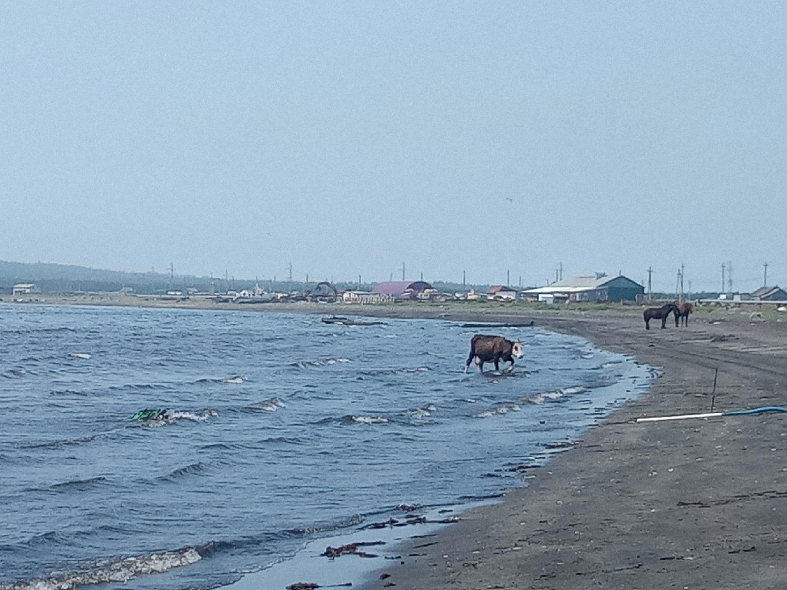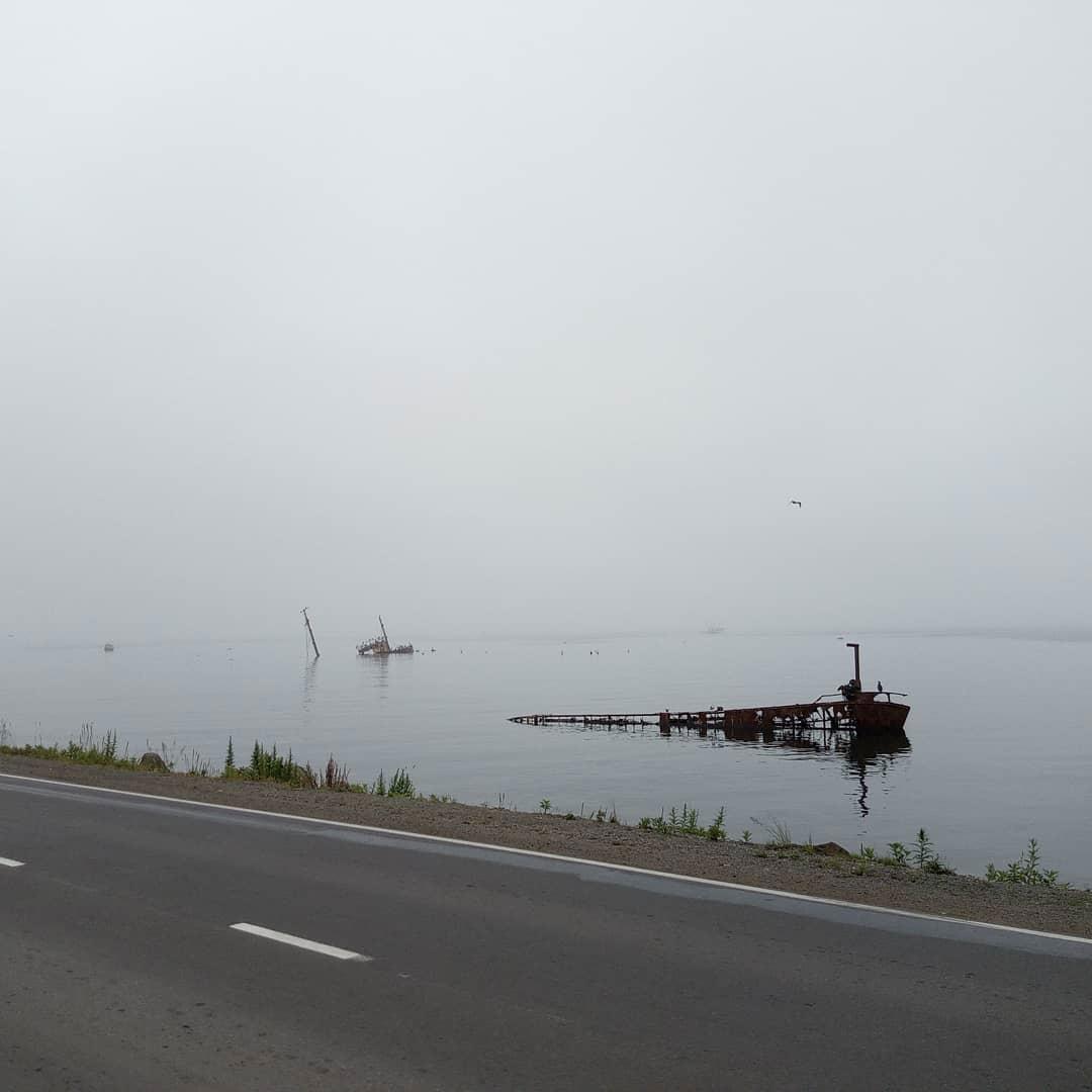 Бухта Южно-Курильская. Когда-то, ПГТ располагался в этой низменности. Но в 1994 пришла большая волна и смыла нахрен, почти все. Теперь там постапокалипсис и редкие вкрапления промзон.