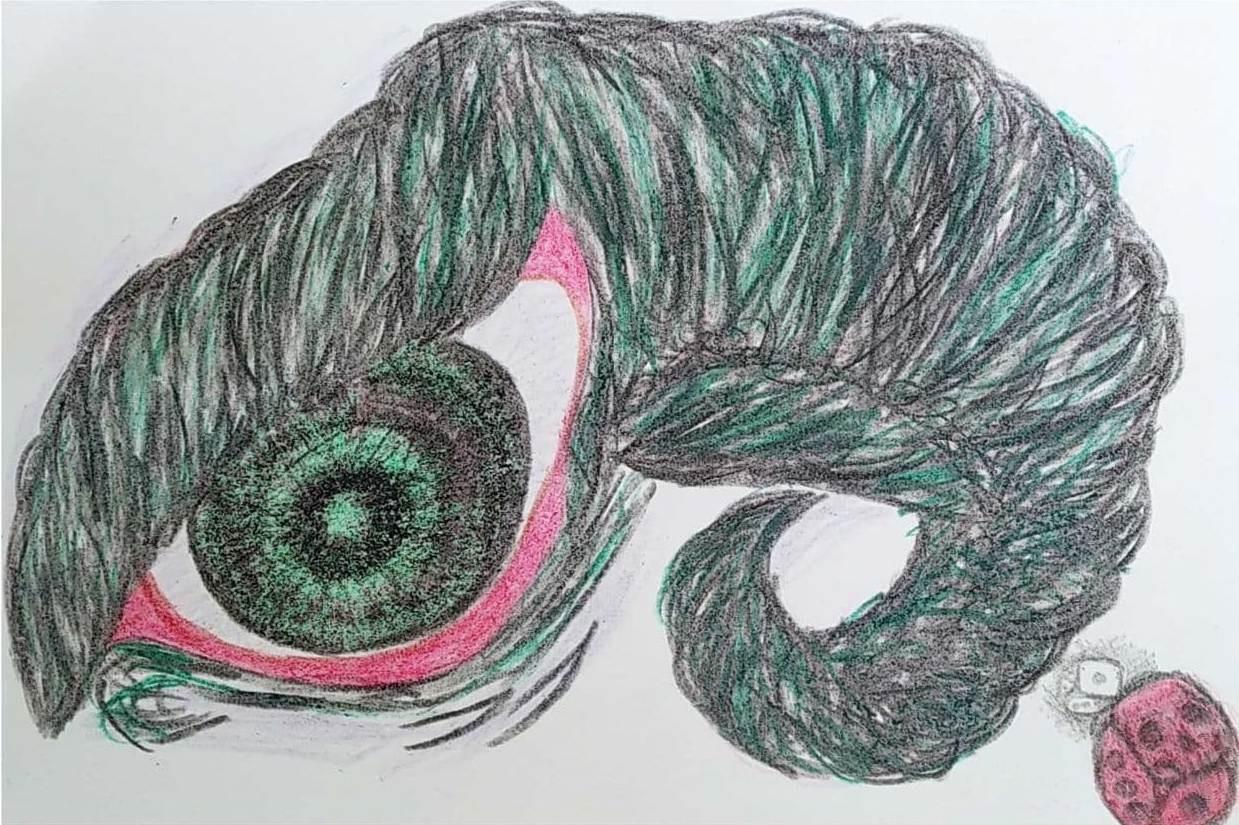 Вторую картинку по "Дикий байкам" нарисовала Бранвена Ллирска. Классный злобный глазюк демона, который я, к своему стыду, поначалу даже не опознала и приняла за профиль слоника))) ну, что-то общее есть, хотя сейчас я не понимаю, как я так проглядела такой пристальный взор зелёного
