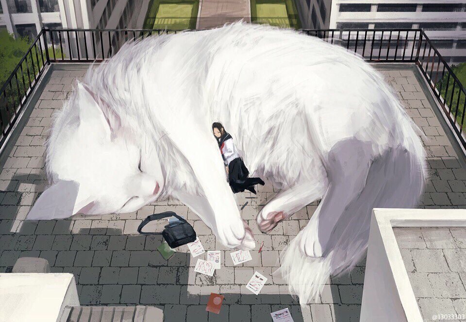 Обычный день в Ноихаре (если помните, там построили школу). Это не Химари, конечно, это кошка внука Юто, которая фигурирует в финале пятого тома. С одноклассницей (две засони, блин).