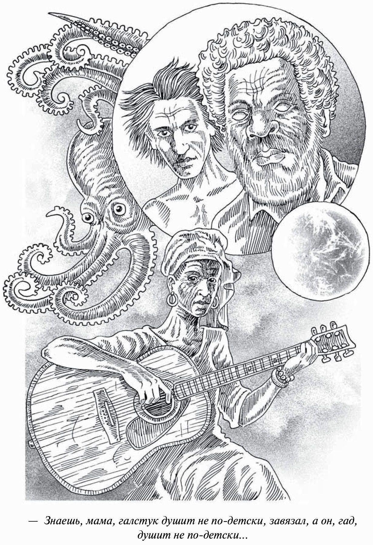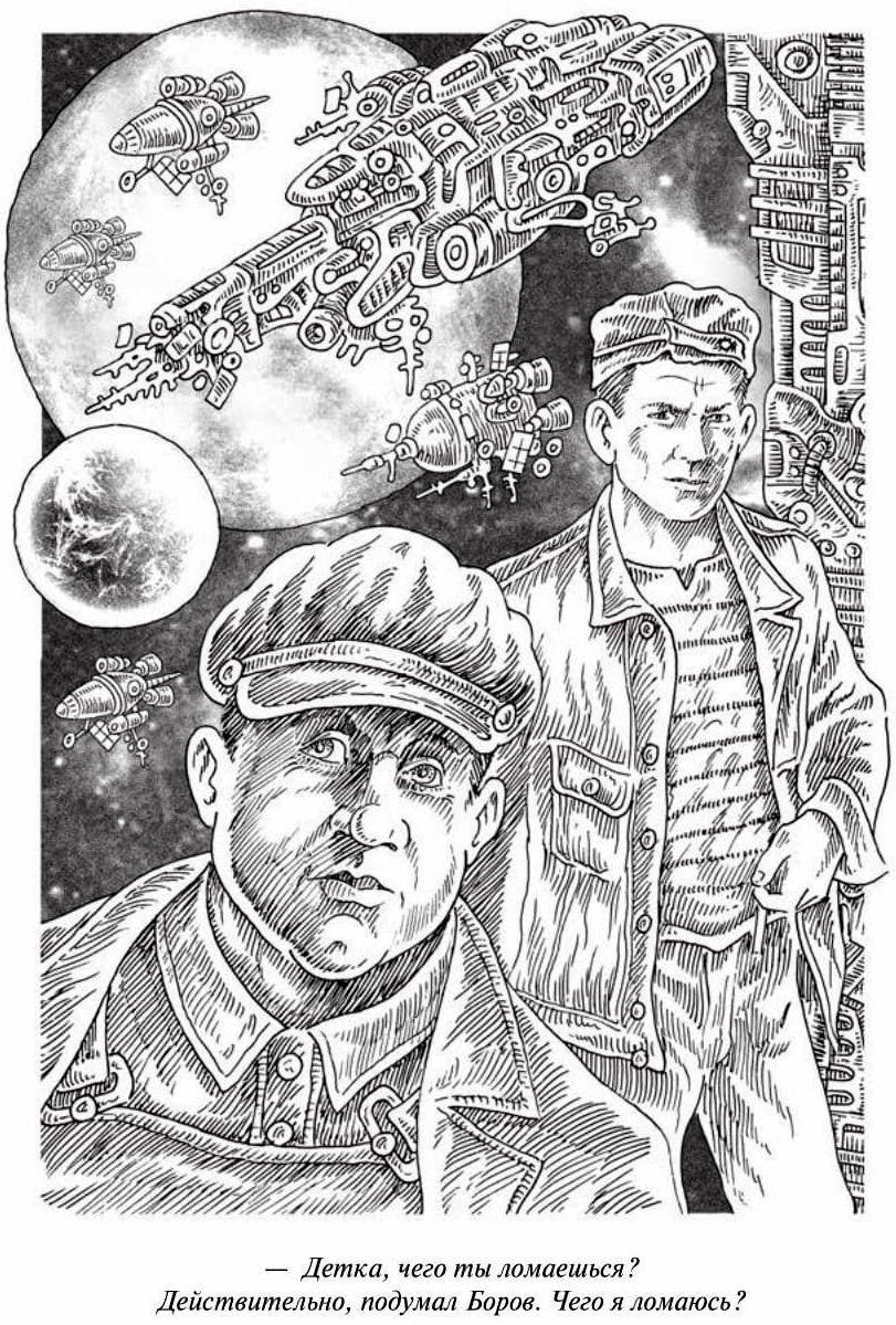 А еще нам повезло с иллюстрациями. Увы, пока что не все романы «Ойкумены» обзавелись внутренними черно-белыми иллюстрациями — но конкретно «Блудного сына» проиллюстрировал наш давний друг Александр Семякин, с которым мы сотрудничаем еще с «лихих 90-х» (т. е., с прошлого века).