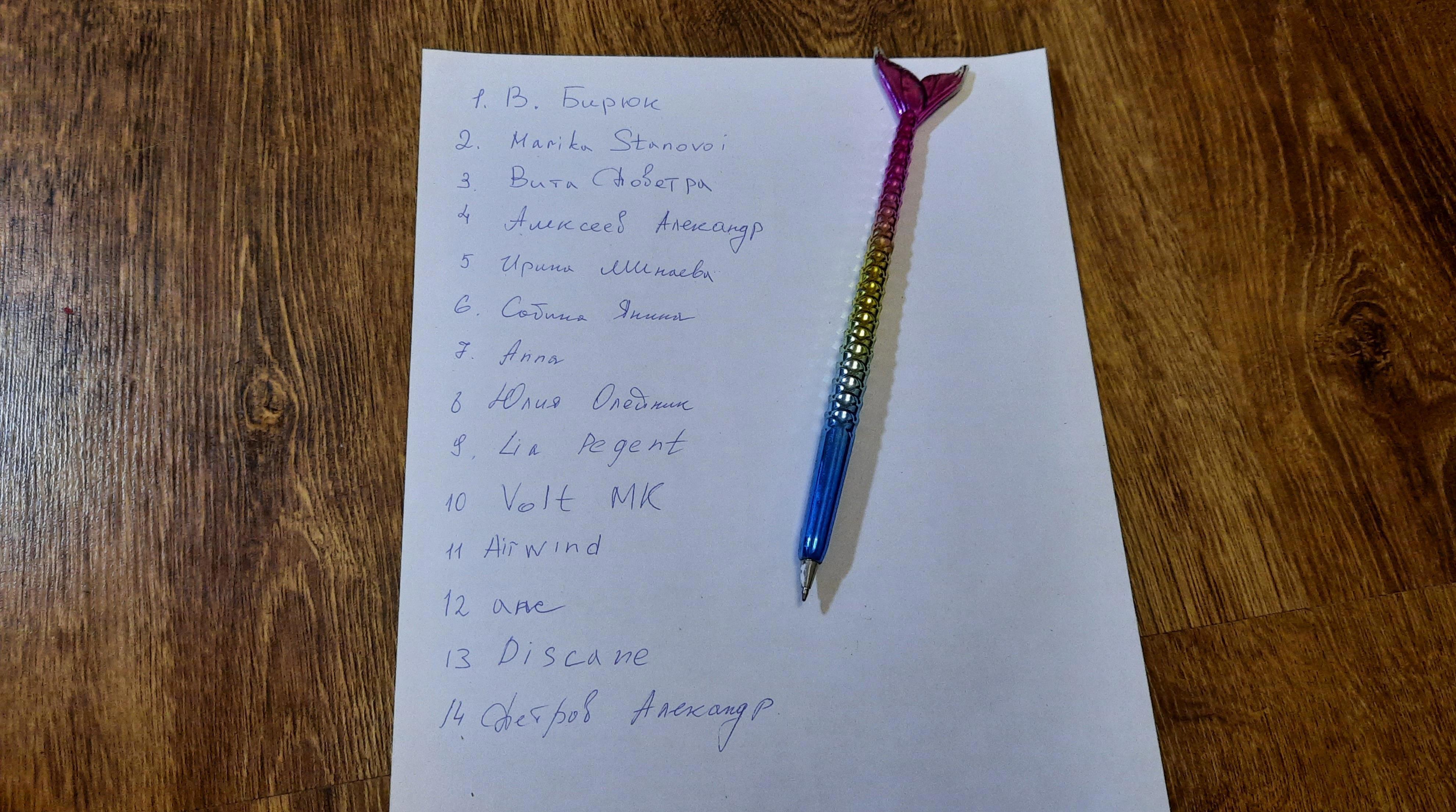 Вот список достойных, которые не побоялись отдать ягненка на заклание. Все были записаны на листочке формата А4 с присвоенными номерами.