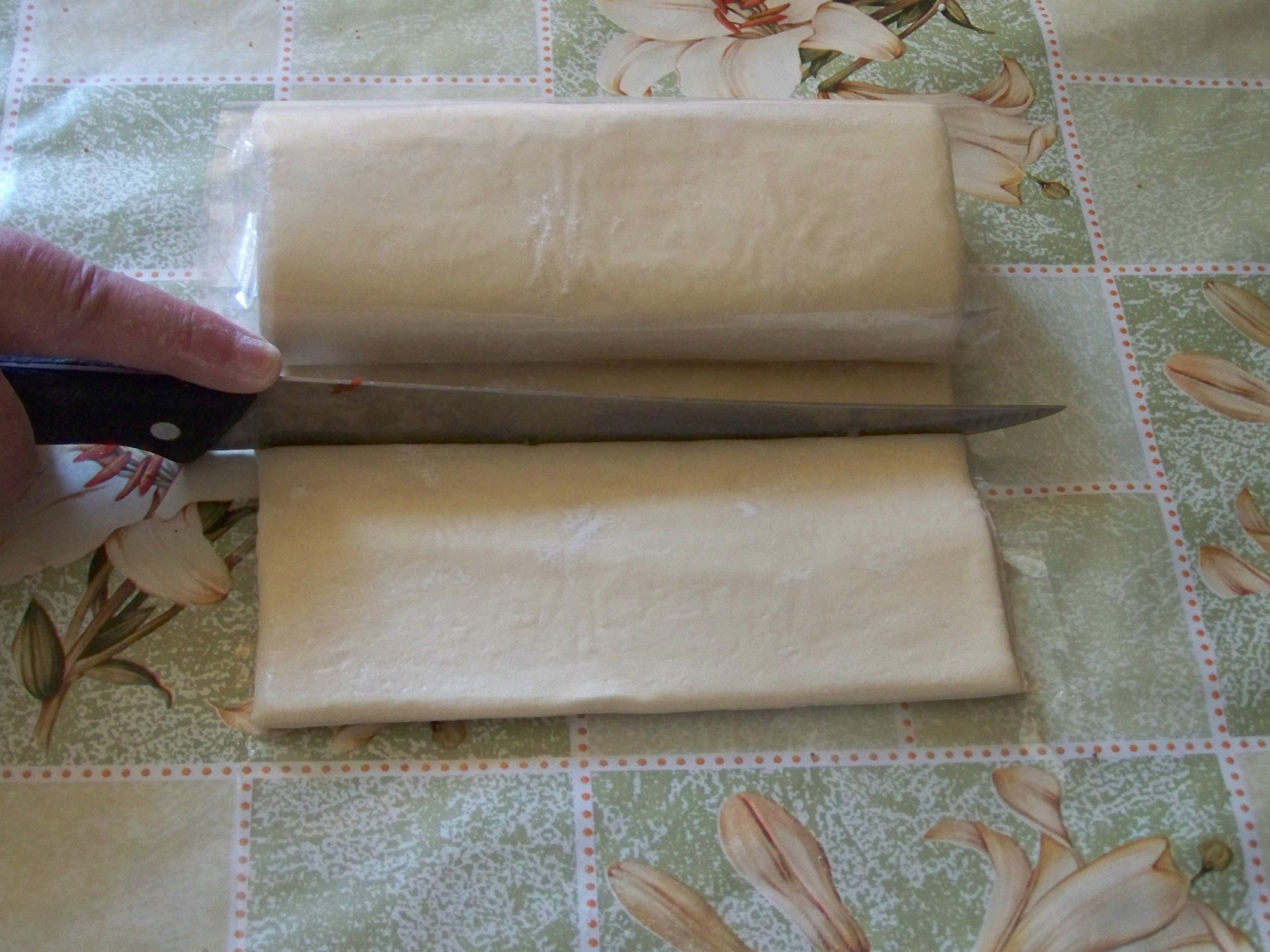 Для этого отрезаю вот такой кусочек теста (шириной 6-7 см)