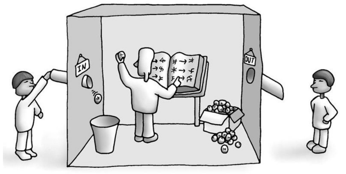 Но это нихера не так работает. ИскИн НИЧЕГО не понимает. Вообще. Он не думает. Для того, чтобы объяснить это домокозявкам, или просто егерям, сидящим в дуплах столетних древ Мандерлории, я расскажу об одном мысленном эксперименте, суть которого объяснит вам, что именно делает нейросеть.