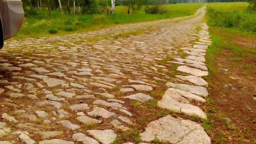 Говорят, что это одно из самых крупных культурных сооружений в мире было создано при Екатерине в основном. Это всё хорошо и правильно, но… верно – не совсем точно. То есть, да – указ о строительстве был, но он был не один, а целый ряд указов от разных самодержцев. И Екатерина, именем которой эту дорогу тоже поминают, тоже писала свой указ в 1775 году, а ещё она написала указ в 1783 году, а ещё… много их было, в общем. Но всё же нужно заметить, что те же указы Екатерины были в общем-то не столько о строительстве дорог, а скорее об их капитальном ремонте и модернизации существующих, как сказали бы сейчас. Когда на самом деле было положено этому строительству на самом деле никто не знает. Есть сведения, что всё началось в 1472 году с присоединением Перми Великой. Потом была Вятка в 1489 году, потом – Сибирь. При этом как-то историки загадочно забывают свои же рассказы о так называемом татаро-монгольском иге на Руси. Причём здесь оно? Да при том, что согласно заявлениям историков именно при этом самом иге была введена система сообщения по всей империи с ямами и ямщиками. Понятно, что такая система без хороших дорог существовать не могла в наших климатических условиях. Так ли это было на самом деле, тогда ли это началось? Сильно в этом сомневаюсь, когда вспоминаю древние карты с кучей городов на восток от Урала и богатейшие захоронения Сибирских скифских курганов, в которых до сих пор находят изделия привезённые из прикаспийских монархий и даже ещё более отдалённых мест типа Ирана и Кавказа. Такой обмен товаров просто не мог обходится без достаточно развитой сети дорог. Так что дело просто не могло быть простым следствием развития Российской государственности 18-19 веков. Но до нашего времени остались только камни времён Екатерины. Да и то – местами. Ещё остались берёзы, первоначально высаженные вдоль этого тракта опять-таки по указу всё той же Екатерины и тоже местами. Берёзы высаживали не для красоты, а с практической целью – защитить дорогу от снежных заносов и помочь путникам найти путь даже в самую плохую погоду.