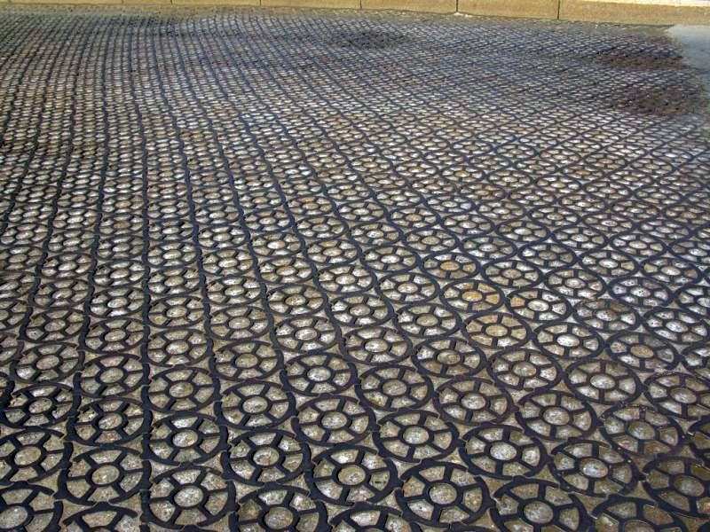 Говоря про Российские дороги нельзя не упомянуть, что у нас вообще-то всегда внимательно следили за новинками в мире в области дорожного строительства. Ярким примером такого внимания и экспериментирования на этой основе является чугунная дорога в Питере. Нет, я не про железнодорожные пути, а про обычную улицу с необычным покрытием. Расположена она на кронштадтском мосту. Вот её кусочек: