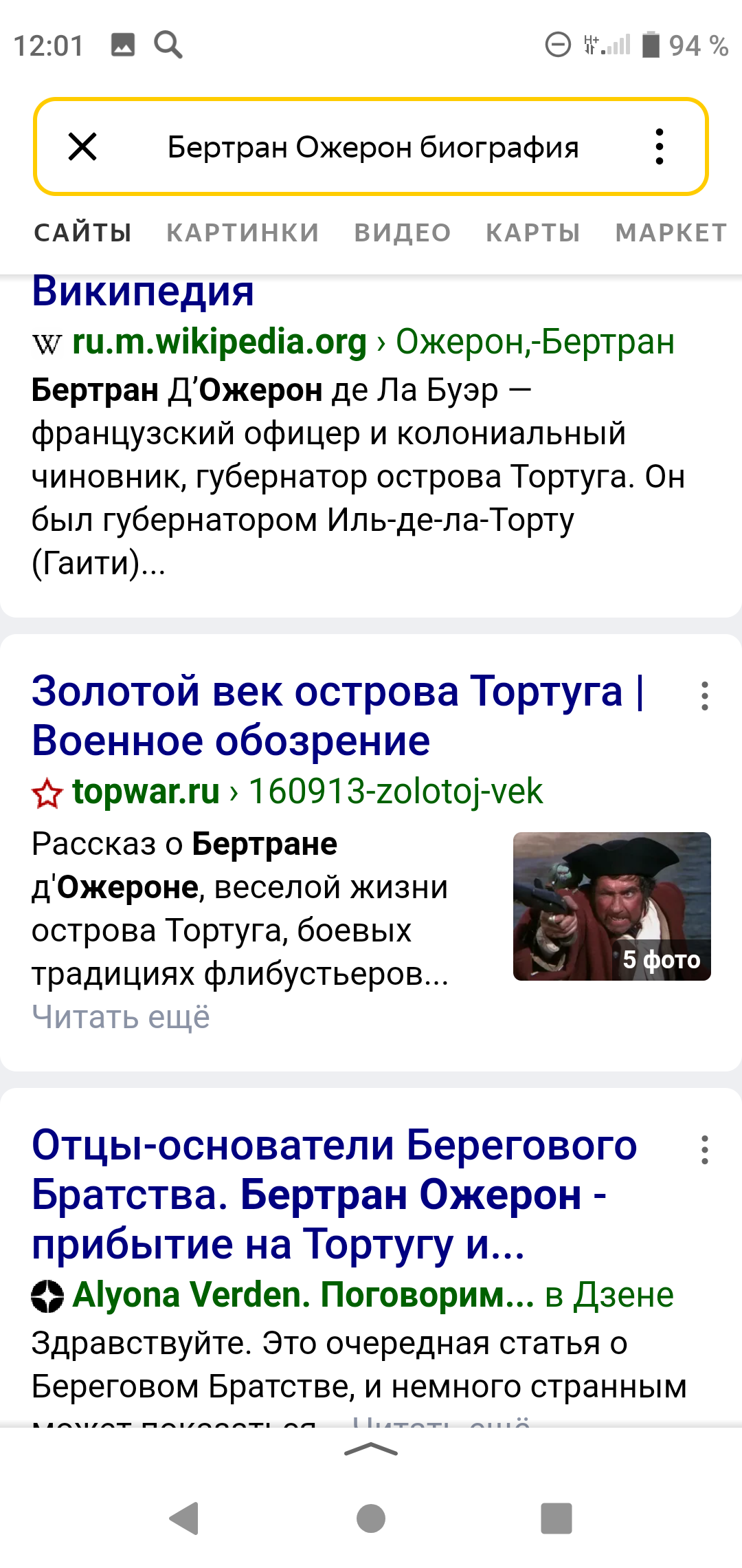 Автор: Alyona VerdenСкоро четыре месяца, как я веду канал на Дзене. Писала я туда много чего, в том числе и отсебятину (наподобие прошлого моего поста, и в Дзене это тоже есть), но основная тема - пиратская. Как реальные пираты, так и выдуманные, книжные или киношные. Вот сейчас на повестке дня стоит Бертран Ожерон - хоть и не пират, зато - губернатор пиратского острова. Одна статья уже вышла на прошлой неделе, сейчас дописываю вторую, и сегодня, набрав в поиске Яндекса "Бертран Ожерон биография" я увидела: