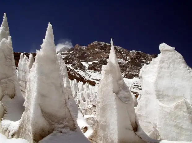Удивительное зрелище представляют собой кальгаспоры, или «кающиеся монахи», — порождённые неравномерным таянием, склонённые в сторону солнца ледяные шипы. На склоне Эвереста, на леднике Кхумбу, высота «монахов» достигает 30 метров