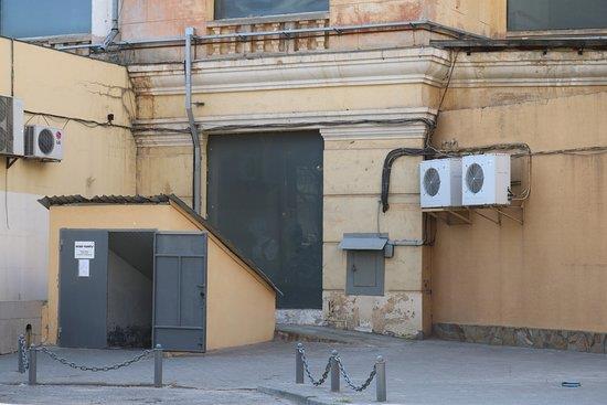 Пристройка с надписью "Столовая" закрыла собой первый этаж исторического здания, ещё одна закрыла некогда главный вход со стороны ротонды, а между ними появился отдельных вход в подвал, в созданный в 2003 году, к шестидесятилетию Победы в Сталинградской Битве, музей "Память":