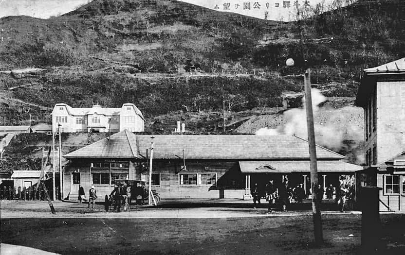 Так, например, выглядело здание вокзала, а позади на сопке - это здание администрации. Вот честно, у того же здания вокзала, который напоминает сарай, очень большая ценность была, а?