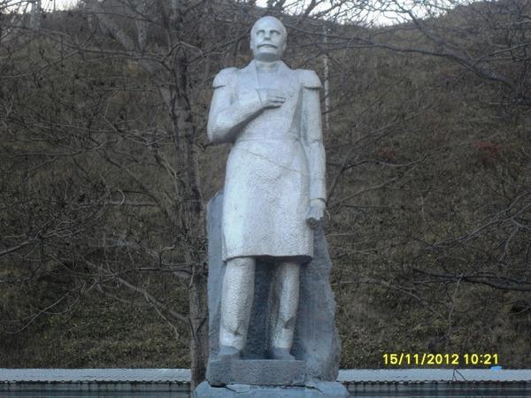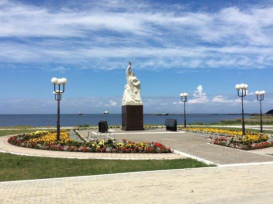 Причём, это новодел, потому что оригинальный памятник был установлен на сопке, но оказался повреждён во время невельского землетрясения 2007-го года. Но его реконструировали и установили на набережной.