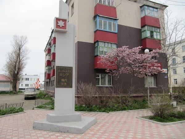 Зато была и есть, например, такая стела - в честь дружбы городов-побратимов Невельска и Вакканая: