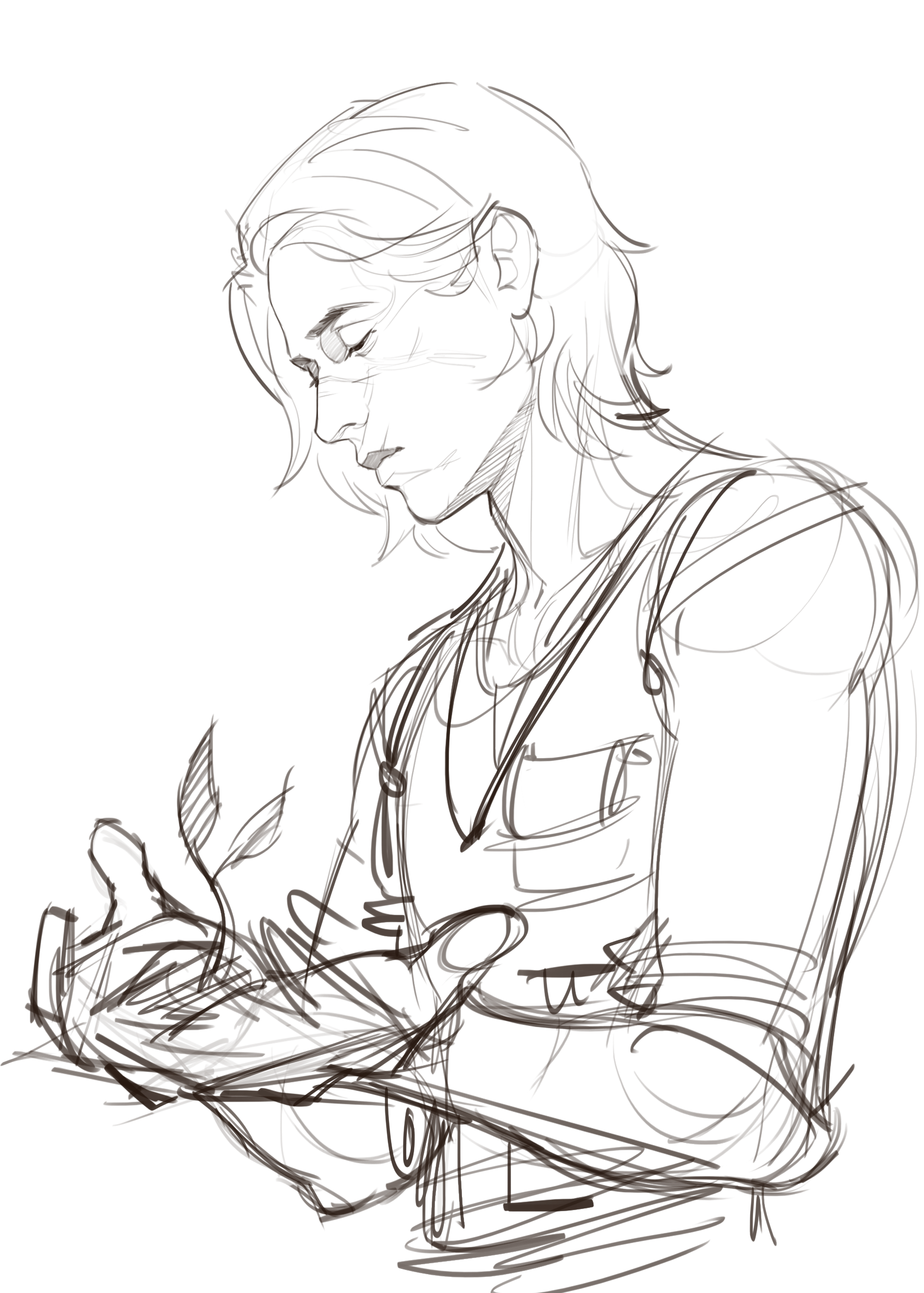 Вот такой эскиз пока. Думаем попробовать короткие волосы сделать.