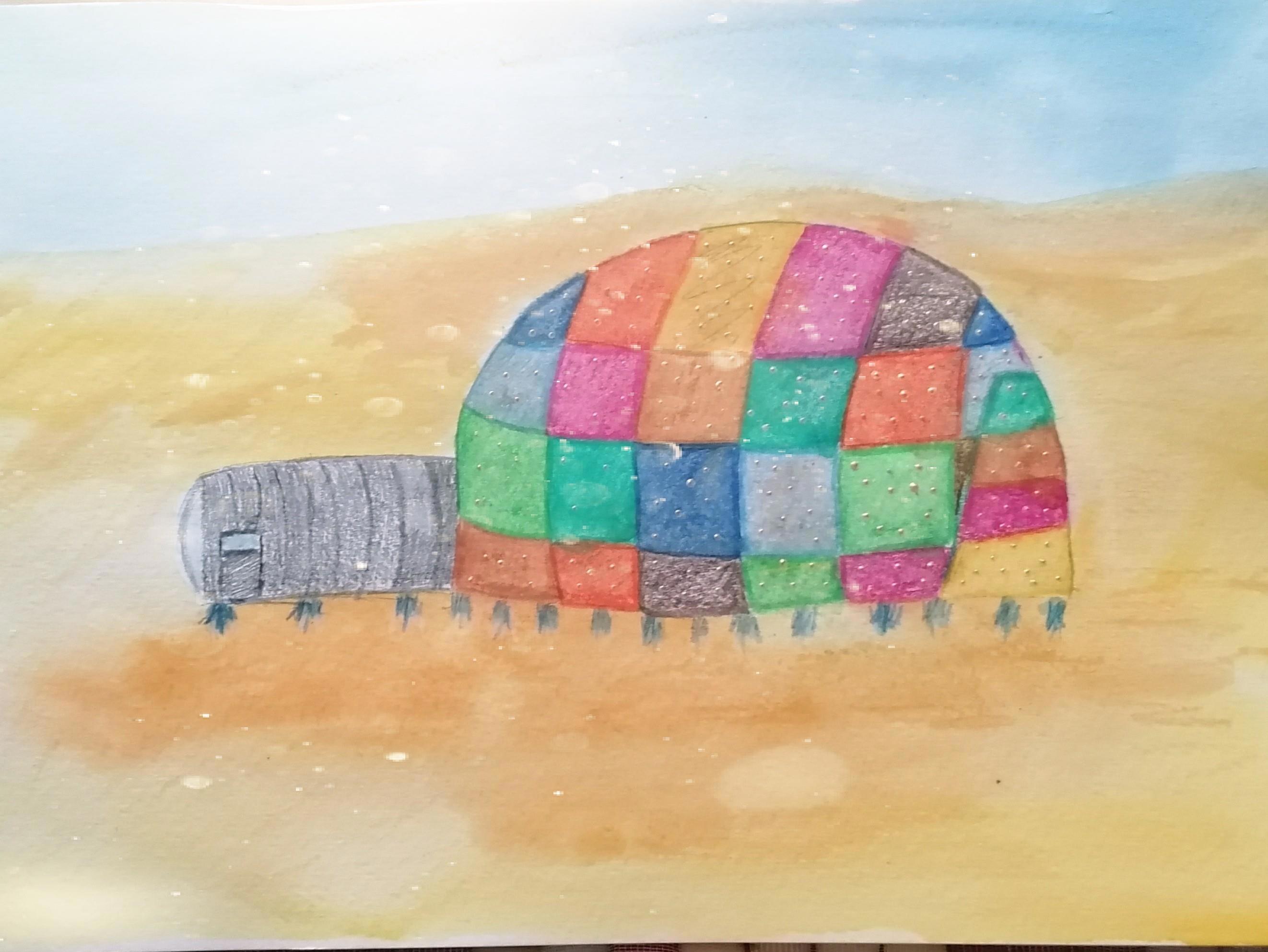 Очень яркие! И если посмотреть на них сверху, то можно заметить их поразительное сходство с обыкновенными лампами накаливания сферической формы, где сама лампа это большая круглая палатка, а цоколь сама повозка. По сути это была платформа на двигателях, поднимавшаяся на уровне метра над землей во время движения. Одновременно и личное пространство торговца, и его транспортное средство, перевозящее палатку через пустыню от города к городу, от поселения к поселению, в которой продавались товары, услуги, слухи и сплетни. Когда они приезжали и выставляли свой товар, то тут же превращались не только в центр бойкой торговли, но и очень активного общения. У каждой палатки было два входа. Один - для всех гостей, другой был входом в саму повозку, куда торговец приглашал особо важных и крупных покупателей для совершения сделки.